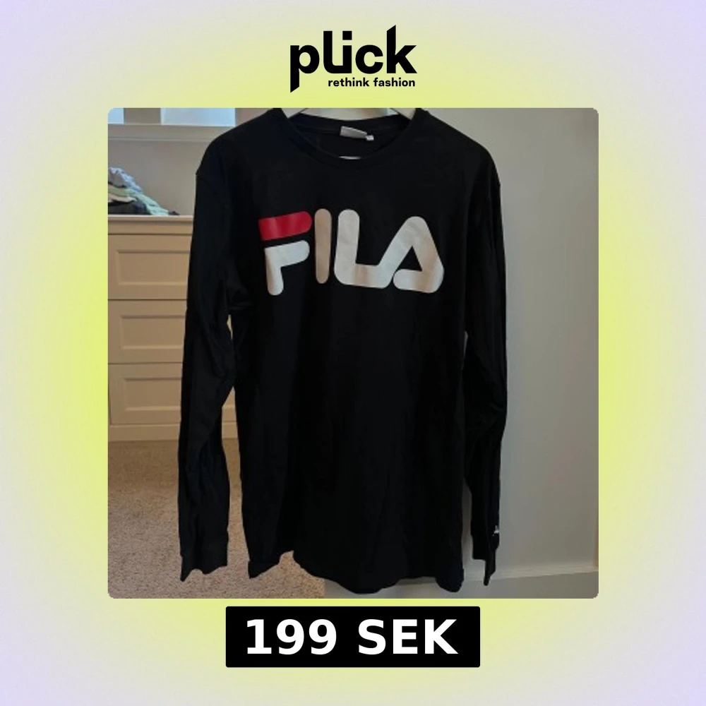 Snygg svart långärmad tröja från FILA med stort logotryck i vitt och rött på bröstet. Perfekt för en avslappnad stil.
