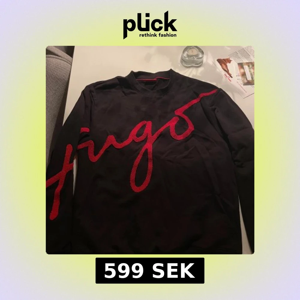 Snygg svart långärmad tröja från Hugo med röd logotyp i ett stort, stilrent tryck över bröstet. Perfekt för en trendig och avslappnad look. Storlek M men sitter som L, aldrig använd