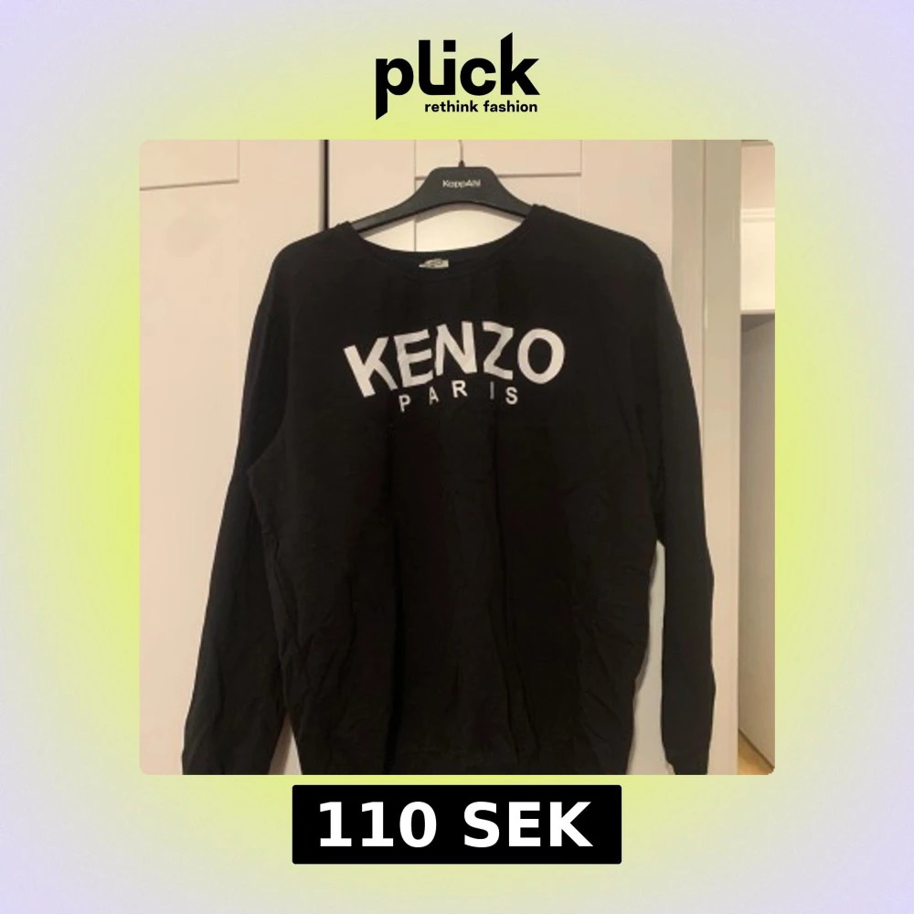 Säljer en svart långärmad tröja från Kenzo med vit logotyp på framsidan. Perfekt för en stilren och avslappnad look. Tröjan har en klassisk passform och är tillverkad i ett mjukt material. I storlek 4XL men skulle säga att den är mer som en XS-S