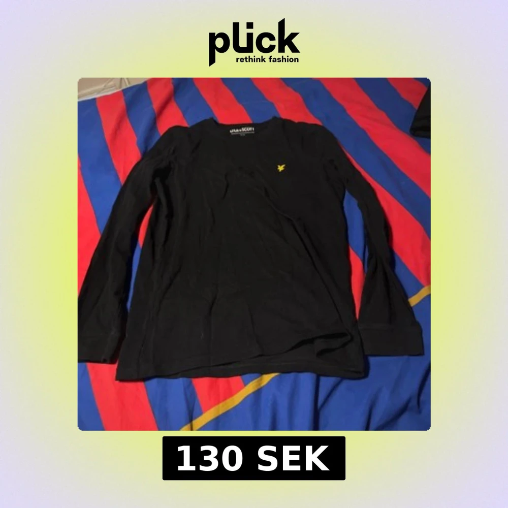Säljer en stilren svart långärmad tröja från Lyle & Scott med deras ikoniska logga i gult på bröstet. Perfekt för en avslappnad och snygg look. Passar bra till både jeans och chinos. Använd 1-3 gånger. Säljer pga den inte är min stil längre.