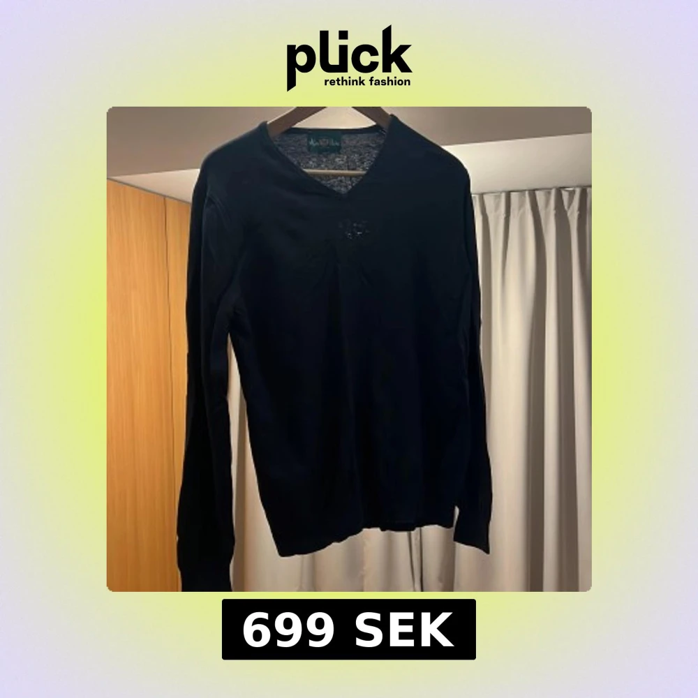 Snygg mörk blå långärmad tröja från Alaine Paine med v-ringad hals. Perfekt för en stilren look. Tröjan är enkel och elegant, vilket gör den lätt att matcha med olika outfits.