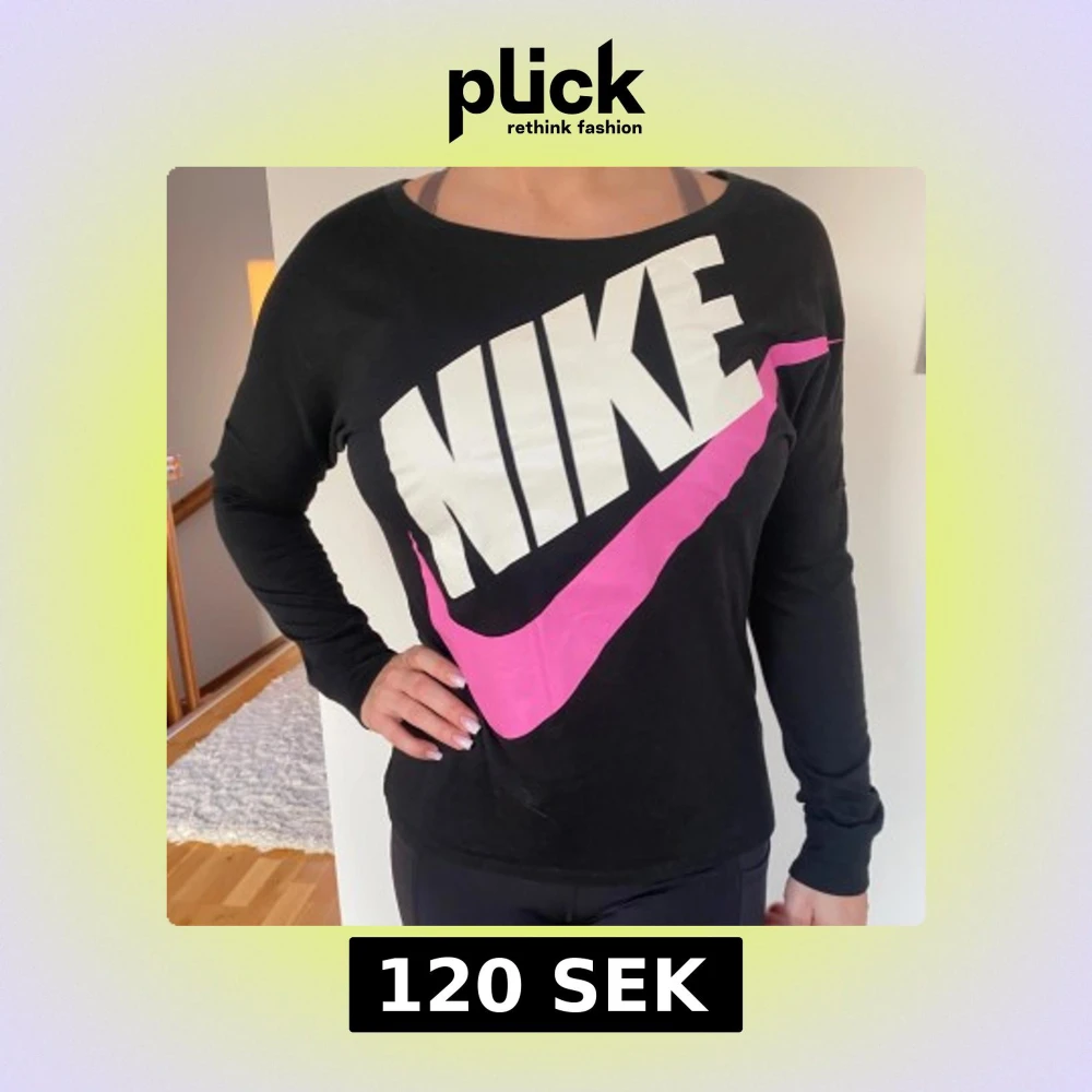 Snygg svart långärmad tröja från Nike med stor vit och rosa logga på framsidan🩷🖤