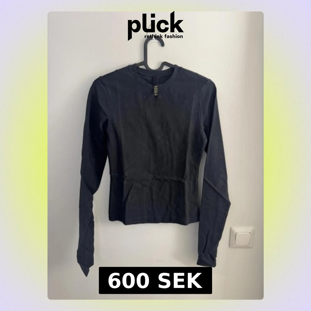 En stilren svart långärmad tröja från SKIMS i mjuk bomull. Modellen har rund halsringning och en klassisk passform som funkar till många olika looks. Perfekt att matcha med jeans eller kjol för en enkel och snygg outfit.