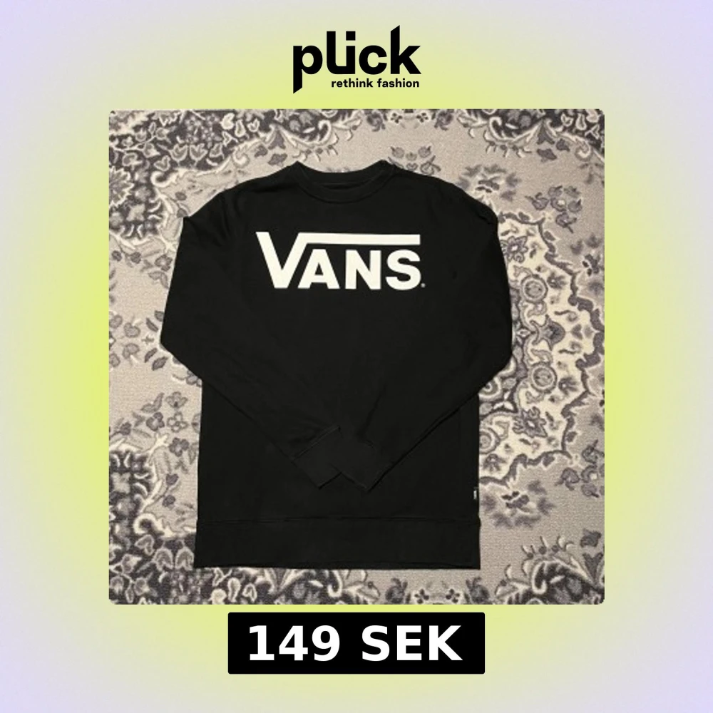 Säljer en svart långärmad tröja från Vans med deras ikoniska logga i vitt på bröstet. Perfekt för en avslappnad stil och enkel att matcha med andra plagg. Tröjan har ribbade muddar vid ärmslut och nederkant.