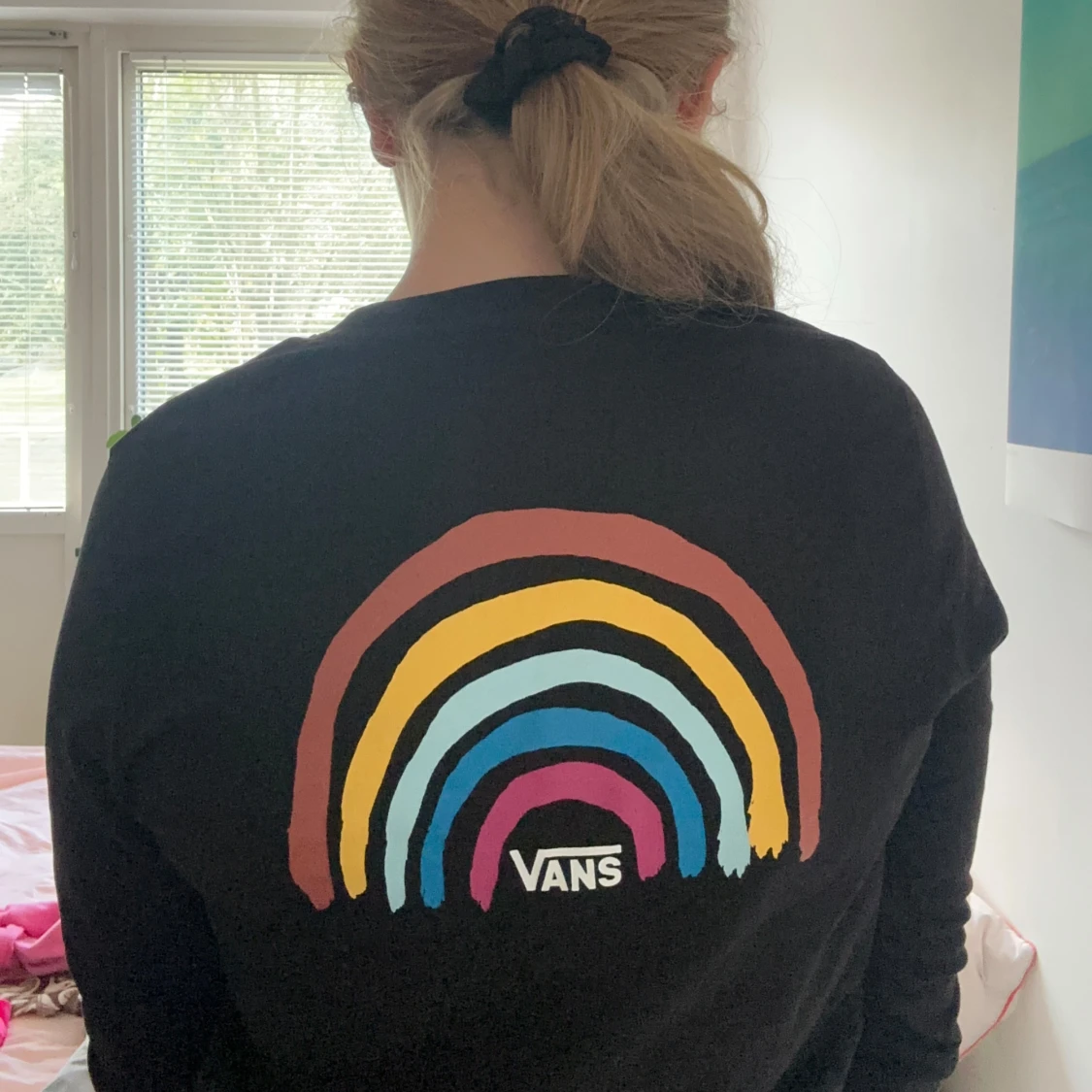 Svart långärmad tröja från Vans med färgglada regnbågar tryckta på ärmen, bröstet och en stor på ryggen. Tröjan har en klassisk passform och är gjord i mjuk bomull, perfekt för dig som gillar streetstyle och färgglada detaljer.