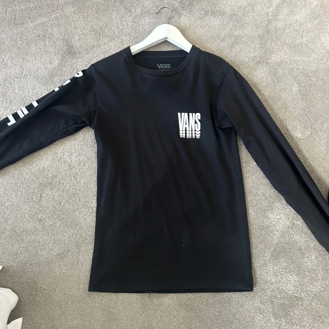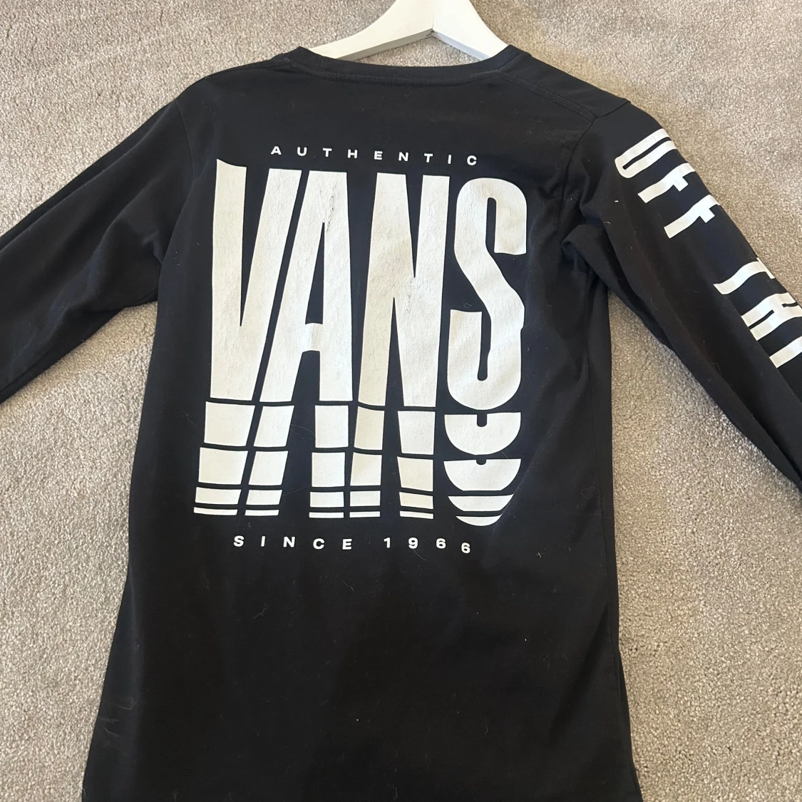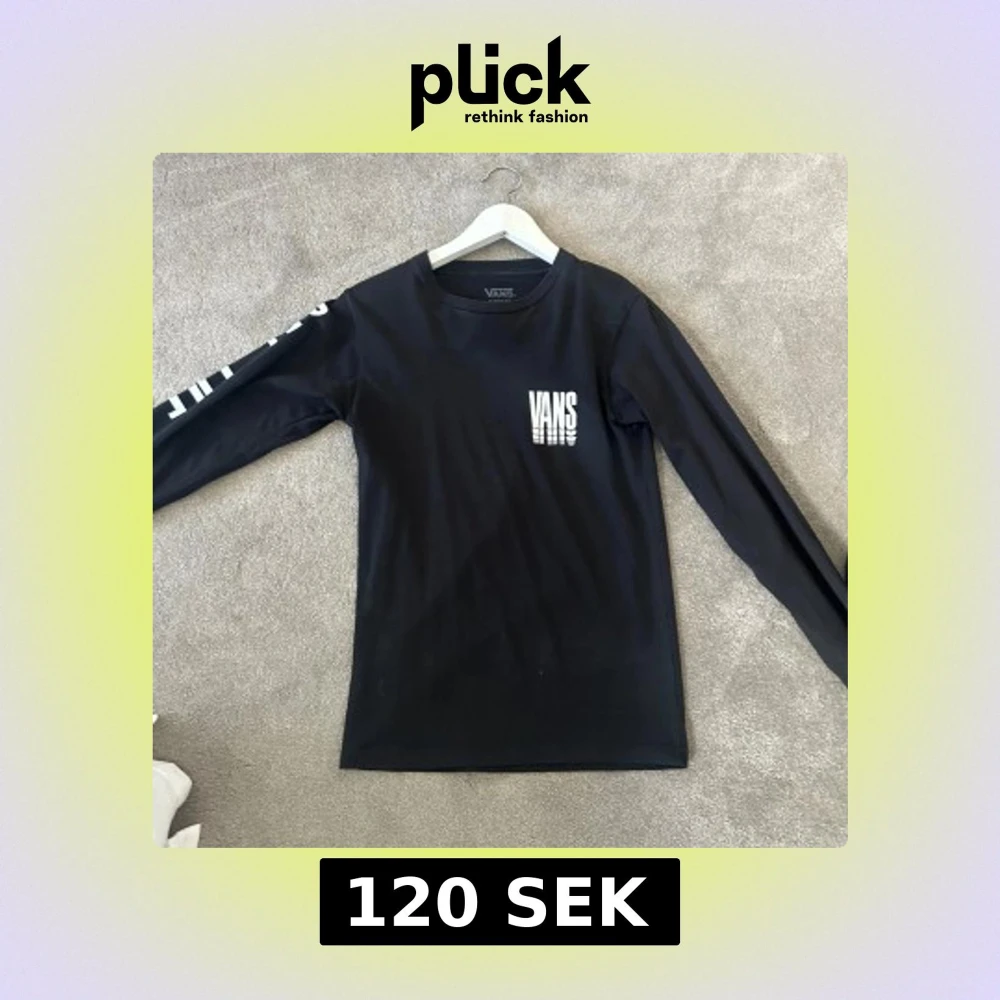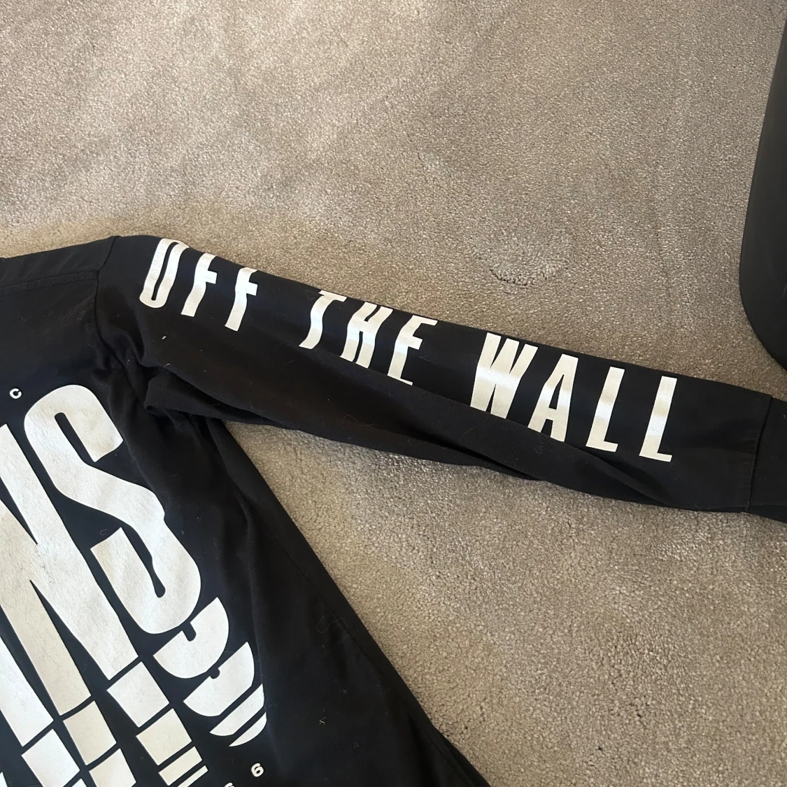 Säljer en svart långärmad tröja från Vans med stora vita tryck på ryggen och ärmen,, priset går att diskutera!🩷