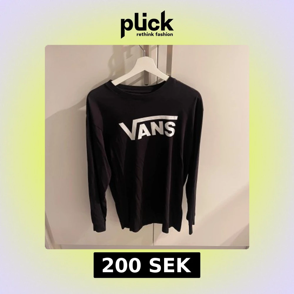 Svart långärmad tröja från Vans med stor vit logga framtill. Klassisk rund halsringning och rak passform. Perfekt för en avslappnad streetstil.
