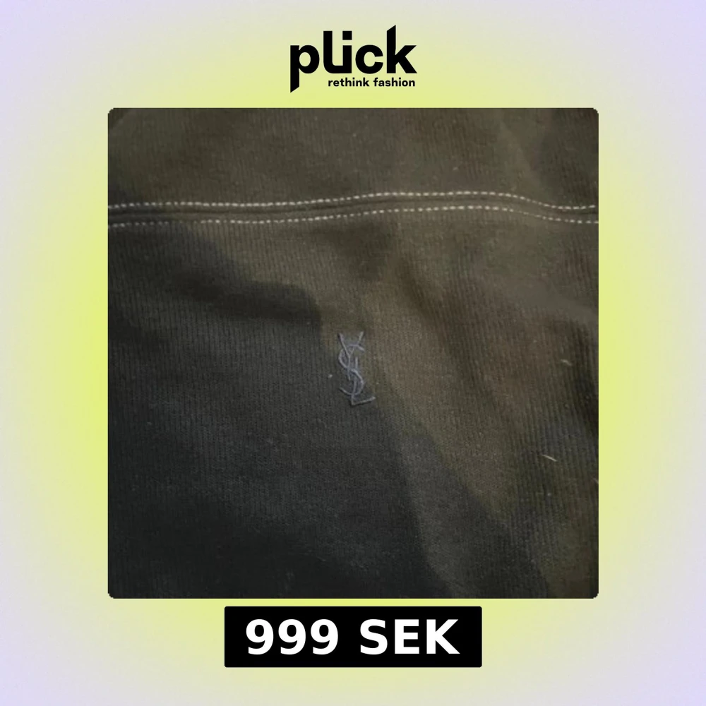 Svart långärmad tröja från Yves Saint Laurent med grå ribbad krage och diskret YSL-brodyr på bröstet. Tröjan har även en broderad logga på ryggen och kontrastsömmar. Perfekt för dig som gillar klassisk och stilren design. Passar perfekt på mig som är 178 och väger 64 kg