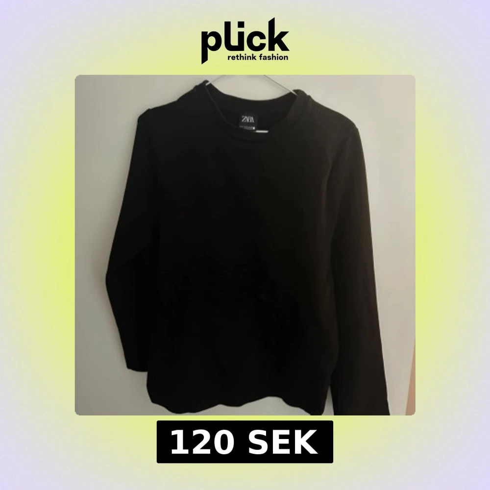Svart långärmad tröja från Zara med rund halsringning. Ärmarna har tre dekorativa knappar, ger lite kostymvibe