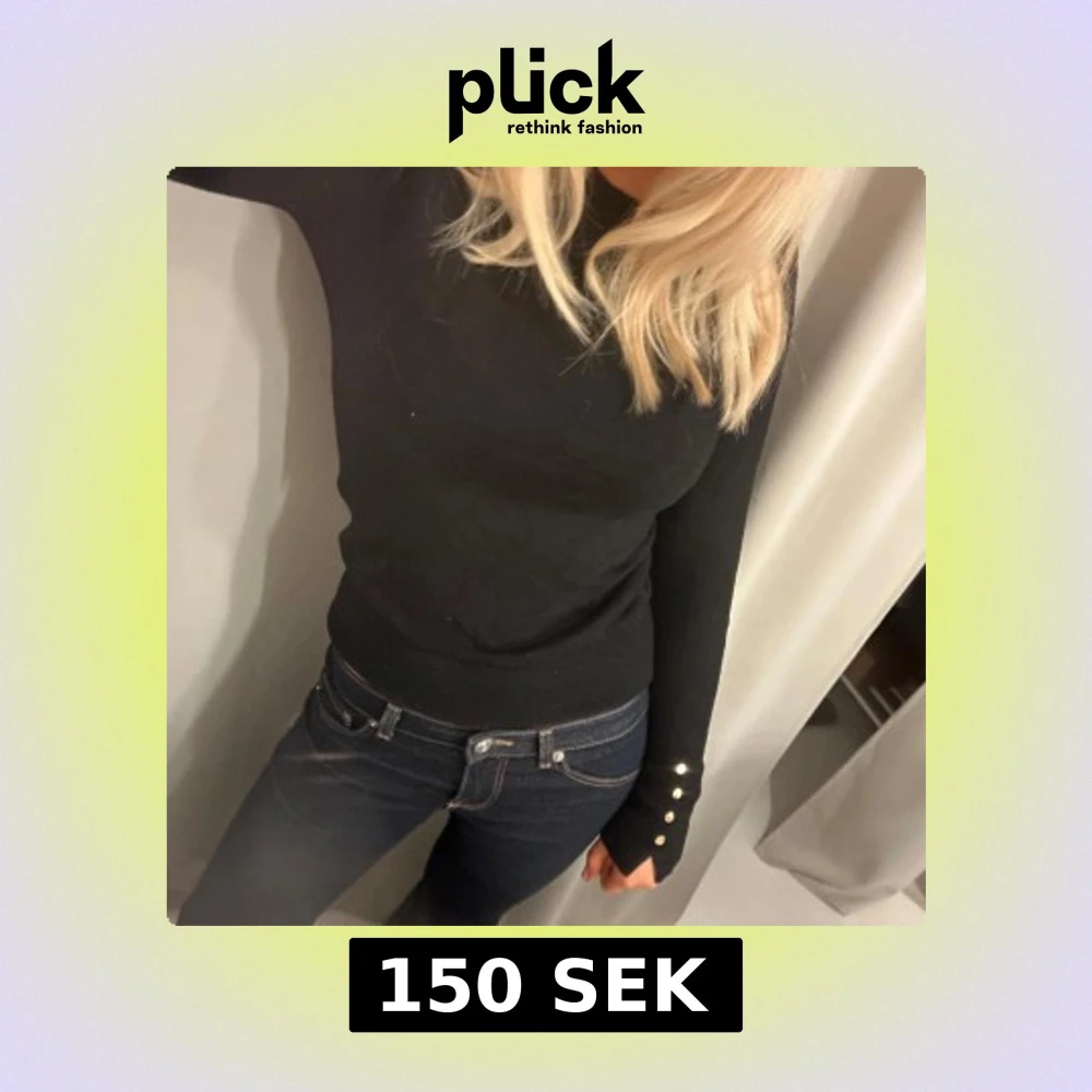 Säljer en stilren svart långärmad tröja från Zara i storlek S . Tröjan har dekorativa guldknappar vid ärmsluten som ger en elegant touch. Passar bra till både jeans och kjol. tröjan har inga tecken på användning