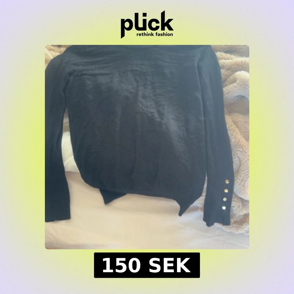 Svart långärmad tröja med rund hals och snygga guldfärgade knappar på ena ärmen. Tröjan har en enkel och stilren design, perfekt att matcha med jeans eller kjol. Materialet känns mjukt och lätt, och passformen är normal.