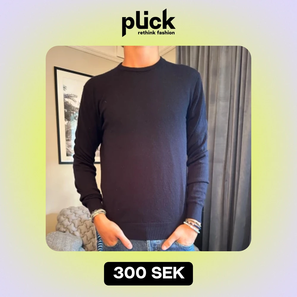 Stilren mörkblå tröja i merinoull från uniqlo. Perfekt till vardags eller att ha över en skjorta. Storlek S men sitter som M.