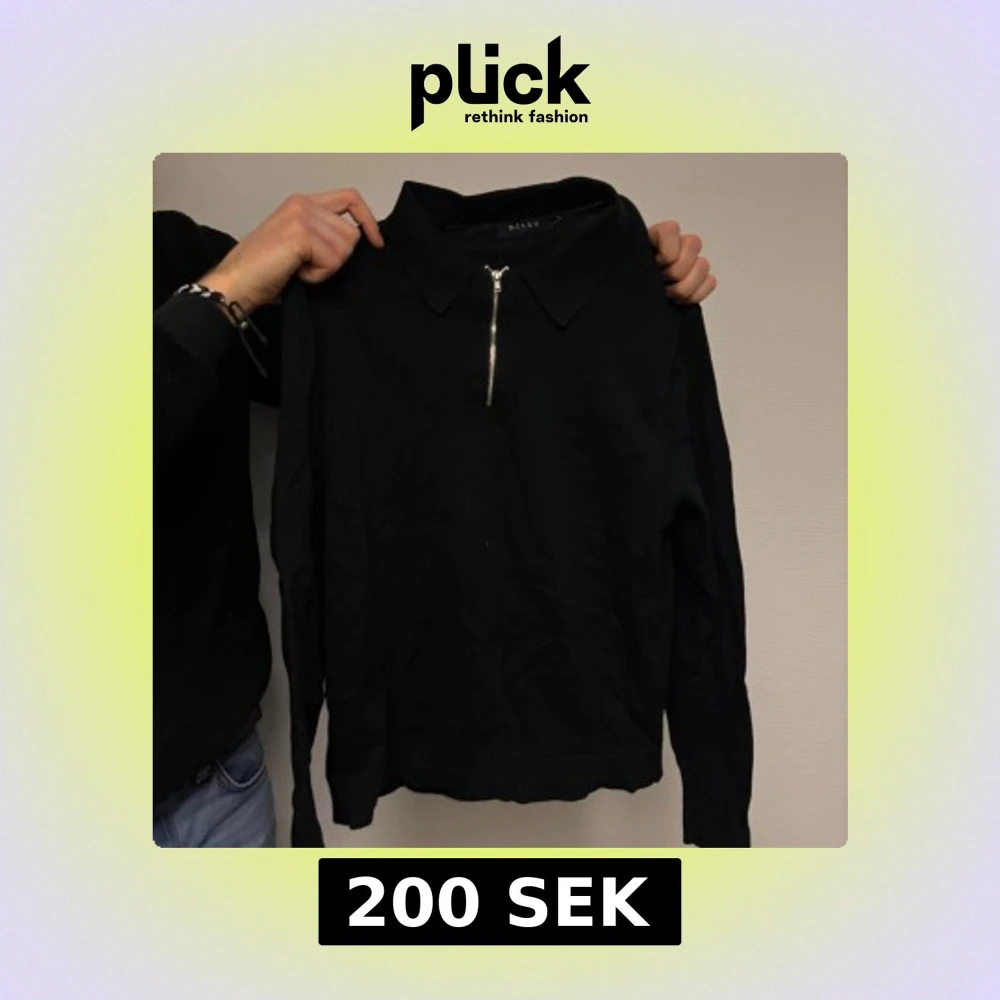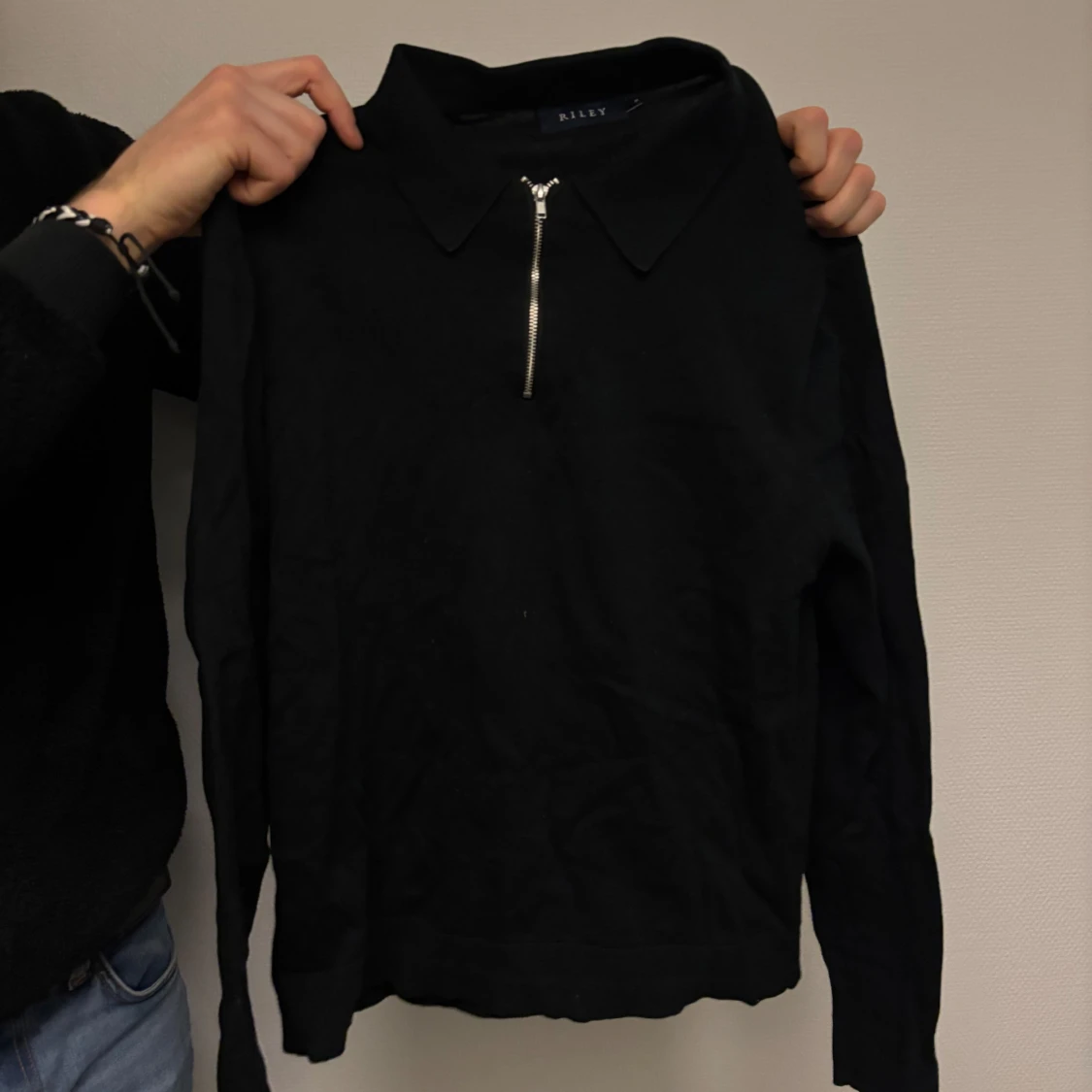 Säljer en stilren svart långärmad tröja från Riley.. Tröjan har en dragkedja framtill och en klassisk krage.