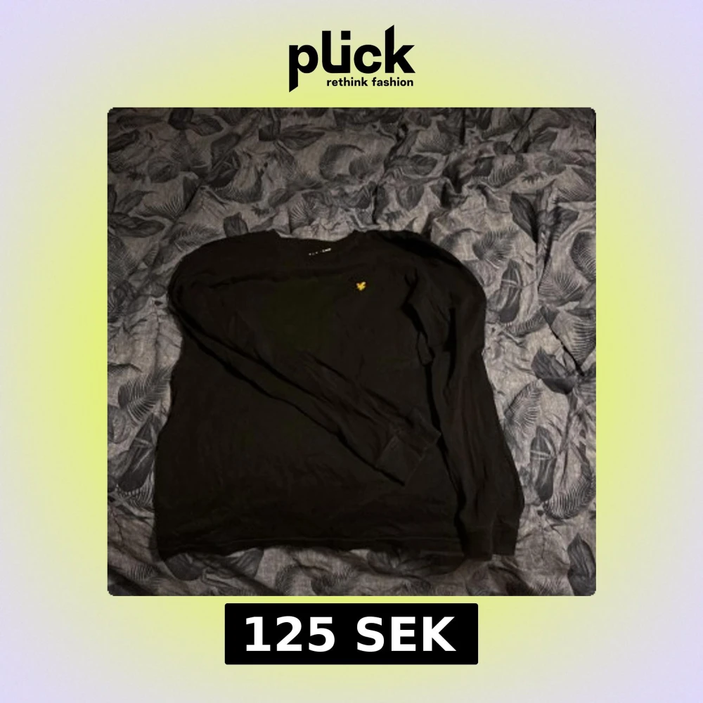 Säljer en stilren svart långärmad tröja från Lyle & Scott med en liten gul logga på bröstet. Perfekt för en avslappnad look. Passar bra till både jeans och chinos.