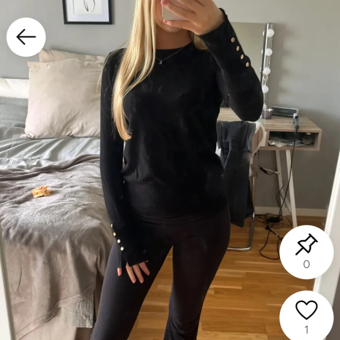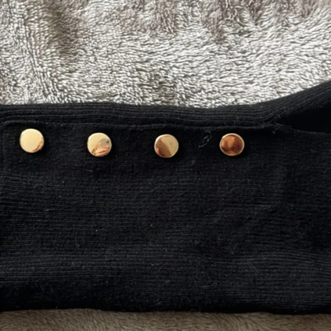 Svart långärmad tröja med snygga guldknappar vid ärmsluten. Det saknas två guldknappar längst ut men inget man tänker på eftersom det är på båda sidorna.💕Köpts för 399 säljs för 200kr (pris kan diskuteras)💕 inte mina bilder så skriv om ni vill ha från mig!