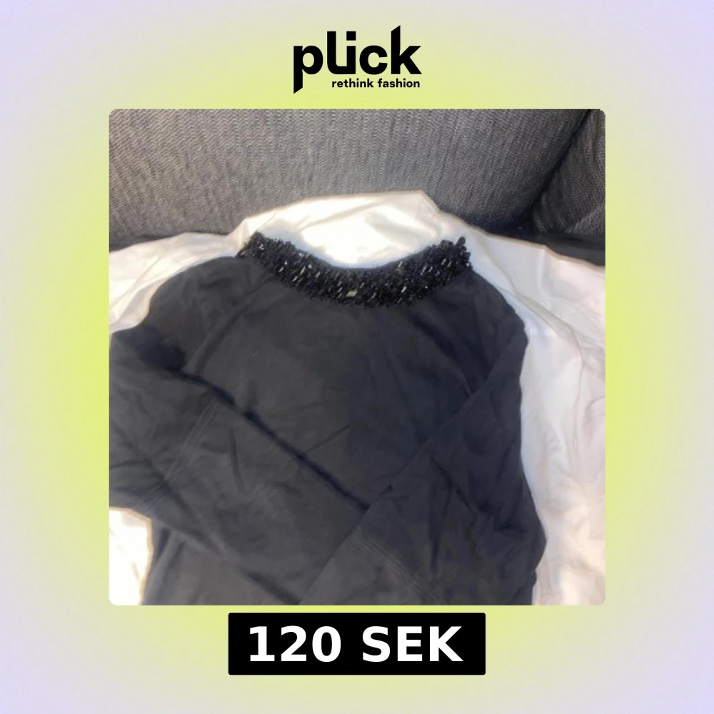 Svart långärmad tröja med snygga svarta pärlor runt halsen som ger en cool detalj. Tröjan har en dragkedja i ryggen och är gjord i ett mjukt material som känns skönt mot huden. Perfekt för dig som gillar att sticka ut med stilrena detaljer.