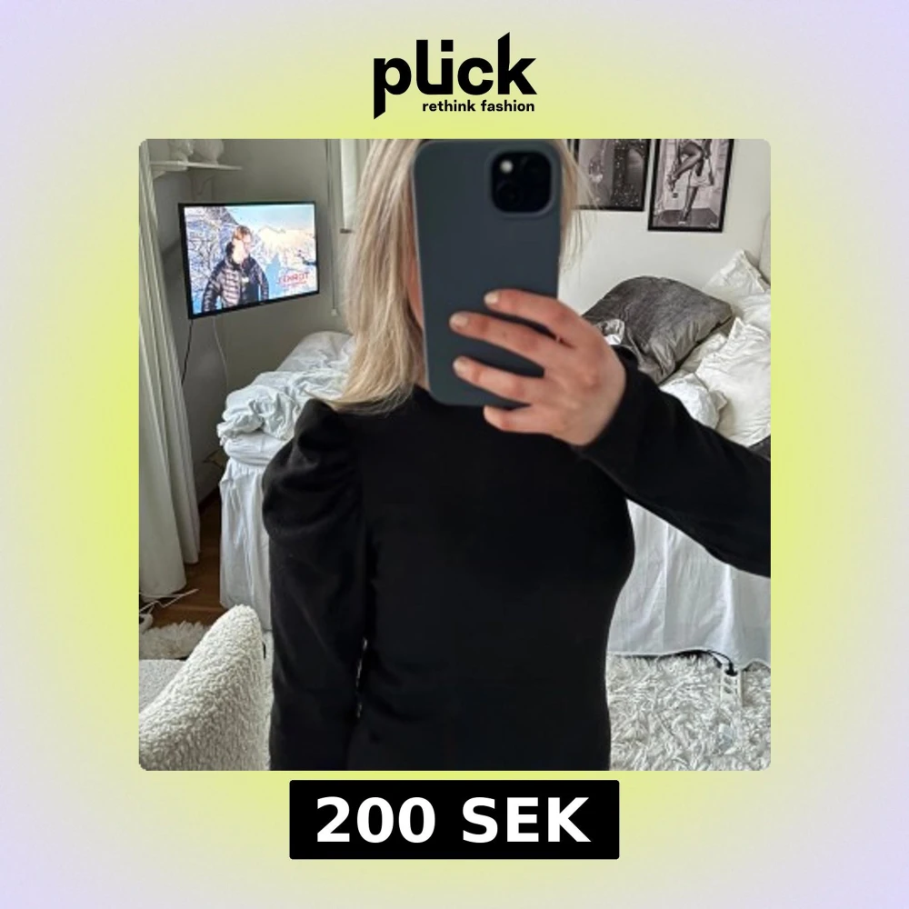 Snygg svart tröja med långa ärmar och puffdetaljer vid axlarna.