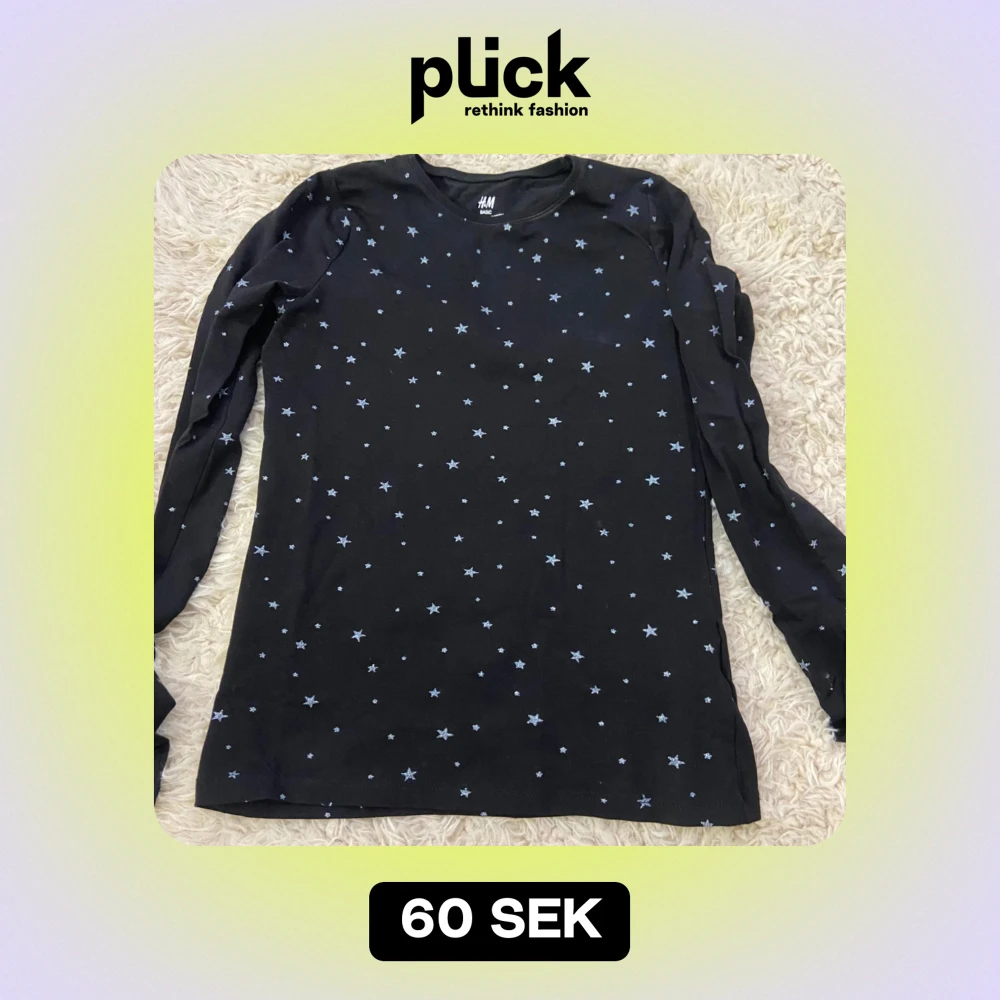 Säljer en svart långärmad tröja från H&M med ett coolt stjärnmönster. Tröjan är gjord av ekologisk bomull och passar perfekt nu till jul!