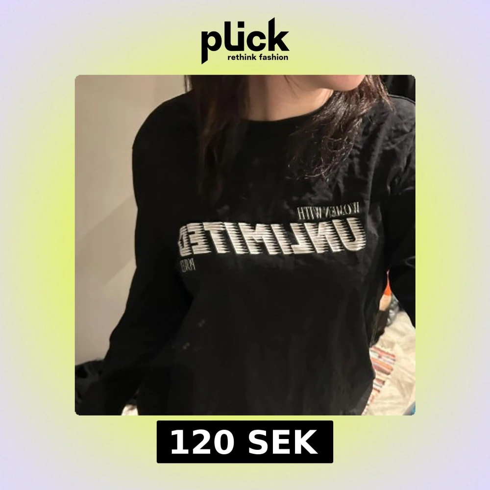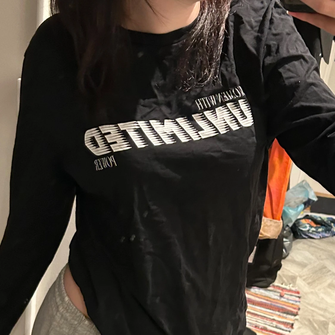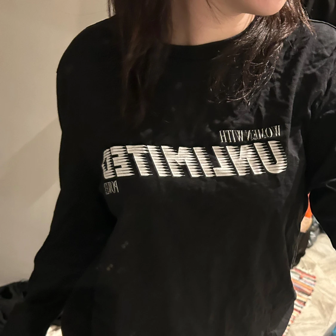 Svart långärmad tröja med vit text på bröstet där det står ”UNLIMITED”. Storlek M.🌷