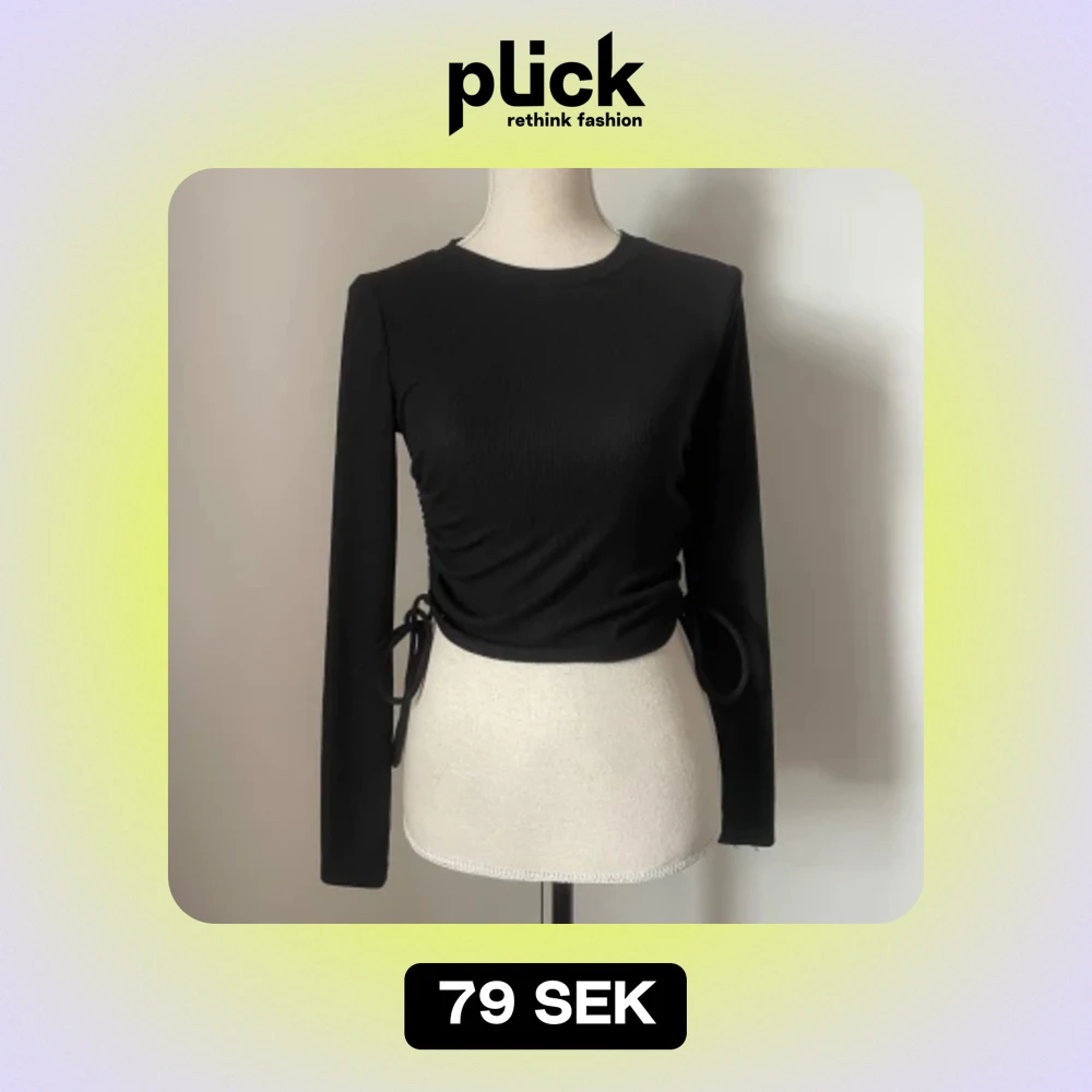 Svart långärmad tröja från Zara! I ribbat material och med reglerbara snören längs sidorna (går att ljustera hur kort man vill bära) Storlek S 🖤