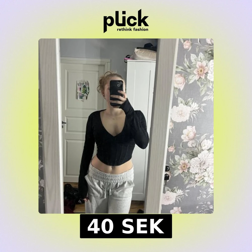 Snygg svart top med långa ärmar och djup v-ringning. Perfekt för en trendig look.🥰