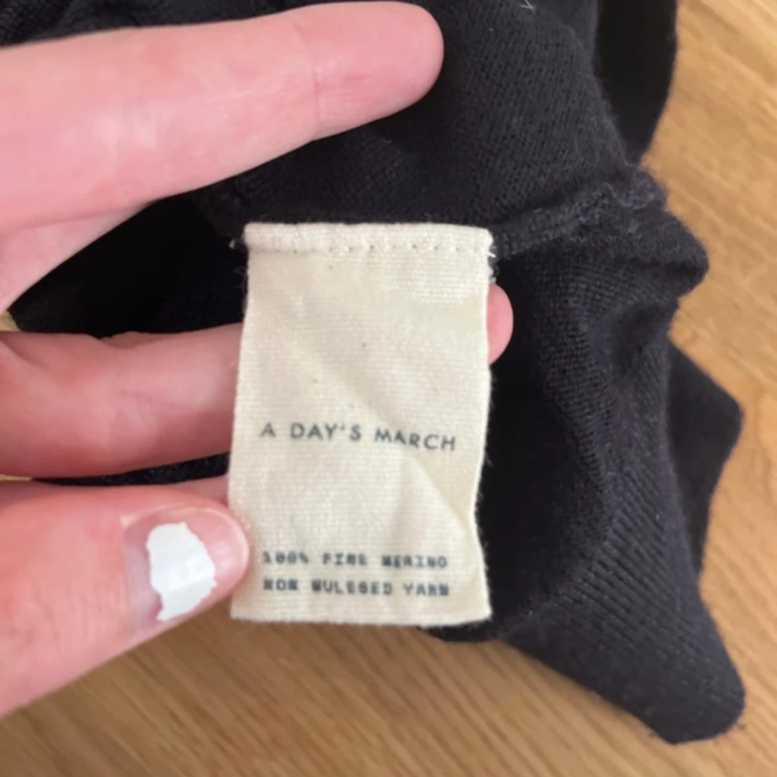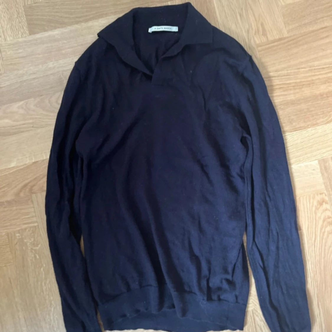 Svart långärmad pikétröja från A Day's March i 100% merinoull. Klassisk krage och stilren design som funkar till allt. Mjuk och skön känsla, perfekt för dig som gillar minimalistisk stil och vill ha något som känns både dressat och chill.