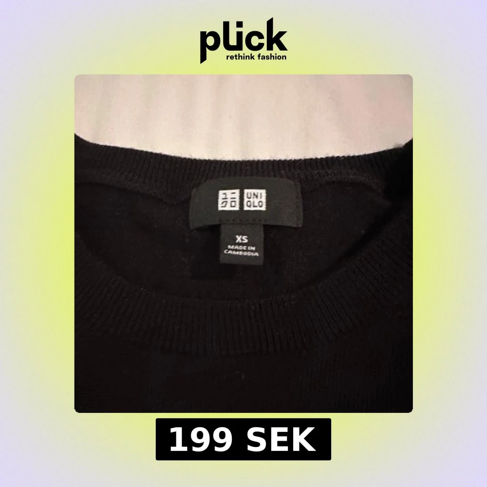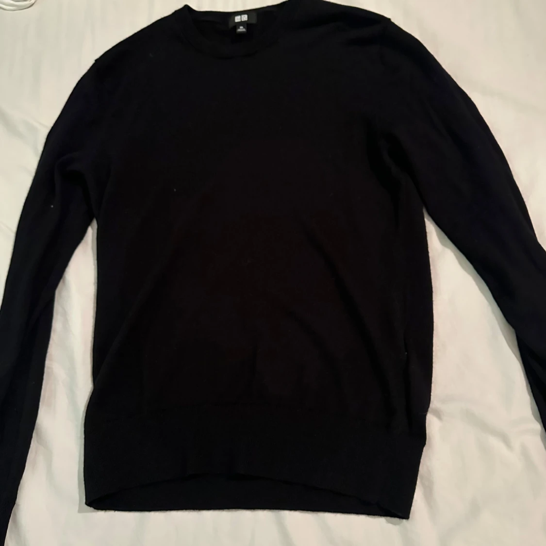 Säljer en stilren svart tröja från Uniqlo i storlek XS. Tröjan har en klassisk design med långa ärmar och rund hals. Perfekt för en minimalistisk look.
