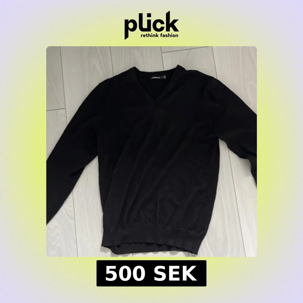 Svart långärmad tröja från J.Lindeberg i 100% merinoull. Klassisk v-ringning och ribbade muddar vid ärmslut och nederkant. Perfekt för dig som gillar stilrena och enkla plagg med en snygg passform. Ny pris 1400kr