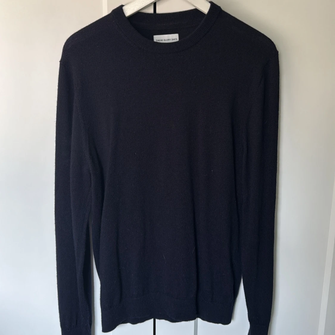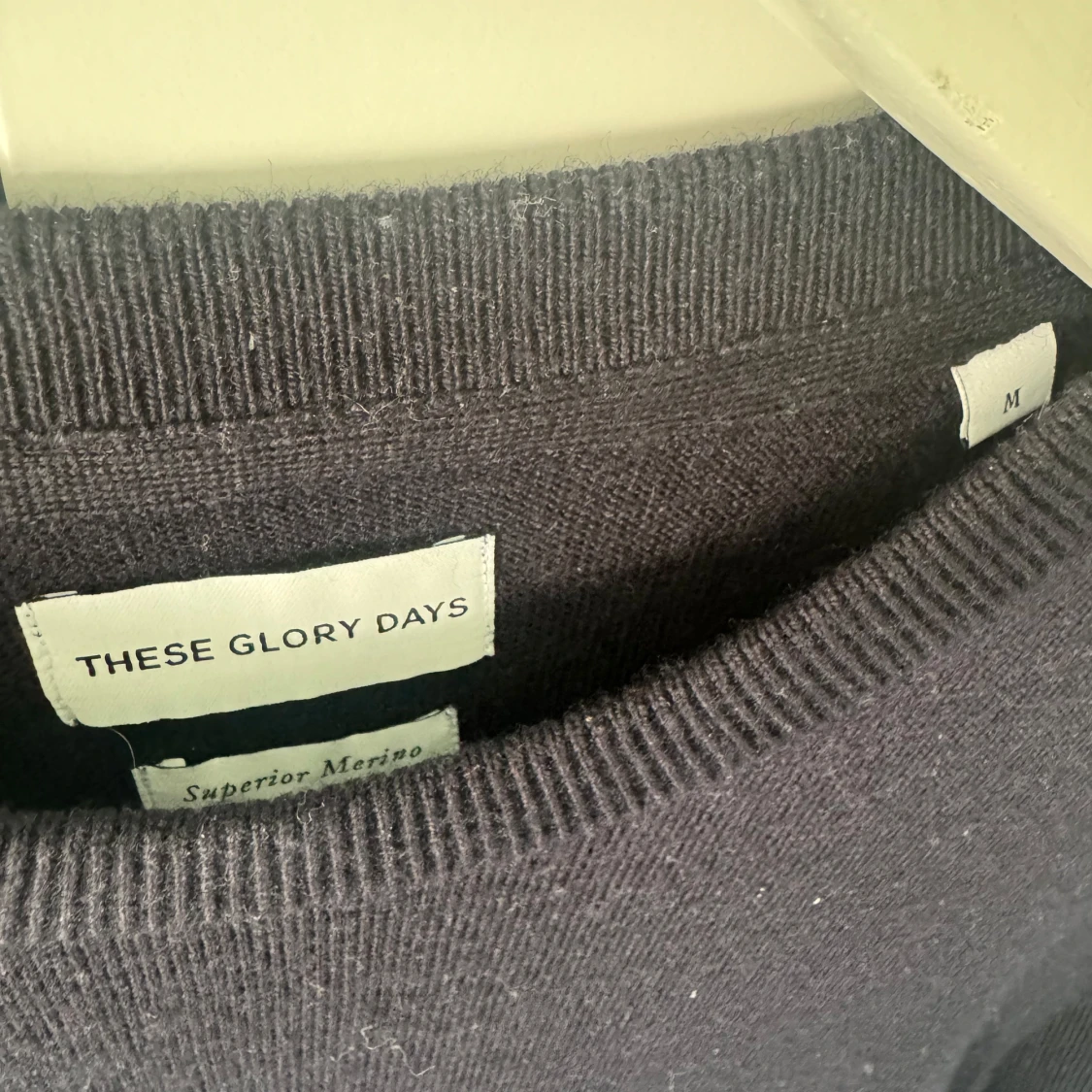 Klassisk svart rundhalsad tröja från These Glory Days i mjuk merinoull. Enkel och stilren design med ribbade muddar vid ärmslut och nederkant. Perfekt för lager-på-lager och funkar året runt för en clean look. Köpt på VOLT