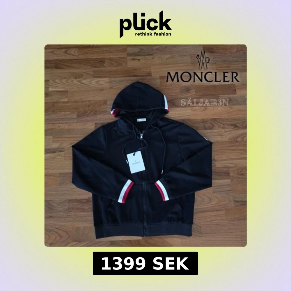 Exklusiv Moncler hoodie i svart, storlek S. Nyskick med taggar! Elegant design med hel dragkedja och klassiska Moncler-detaljer i rött, vitt och blått på muddar och huva. Ikoniskt logomärke på ärmen för en exklusiv touch. Huva med dragsko och fickor för en modern, funktionell stil. Tillverkad i mjukt och slitstarkt tyg som ger både komfort och premiumkänsla. En tidlös lyxig hoodie som lyfter varje outfit. 📦 Snabb leverans – skickas samma dag!