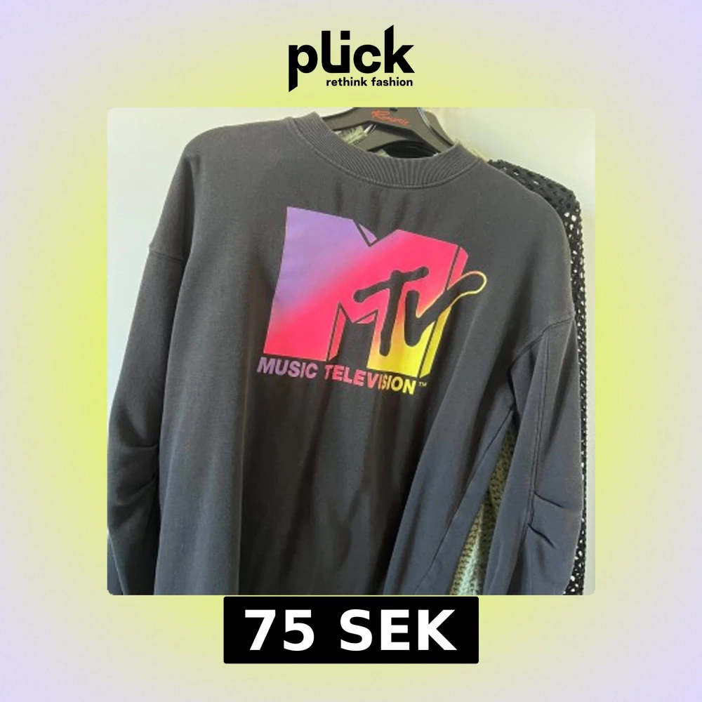 Cool svart sweatshirt med stor MTV Music Television-logga i lila, rosa och gul på bröstet. Tröjan har rund hals, långa ärmar och är gjord i mjuk bomull. Perfekt för dig som gillar retro och streetstyle.