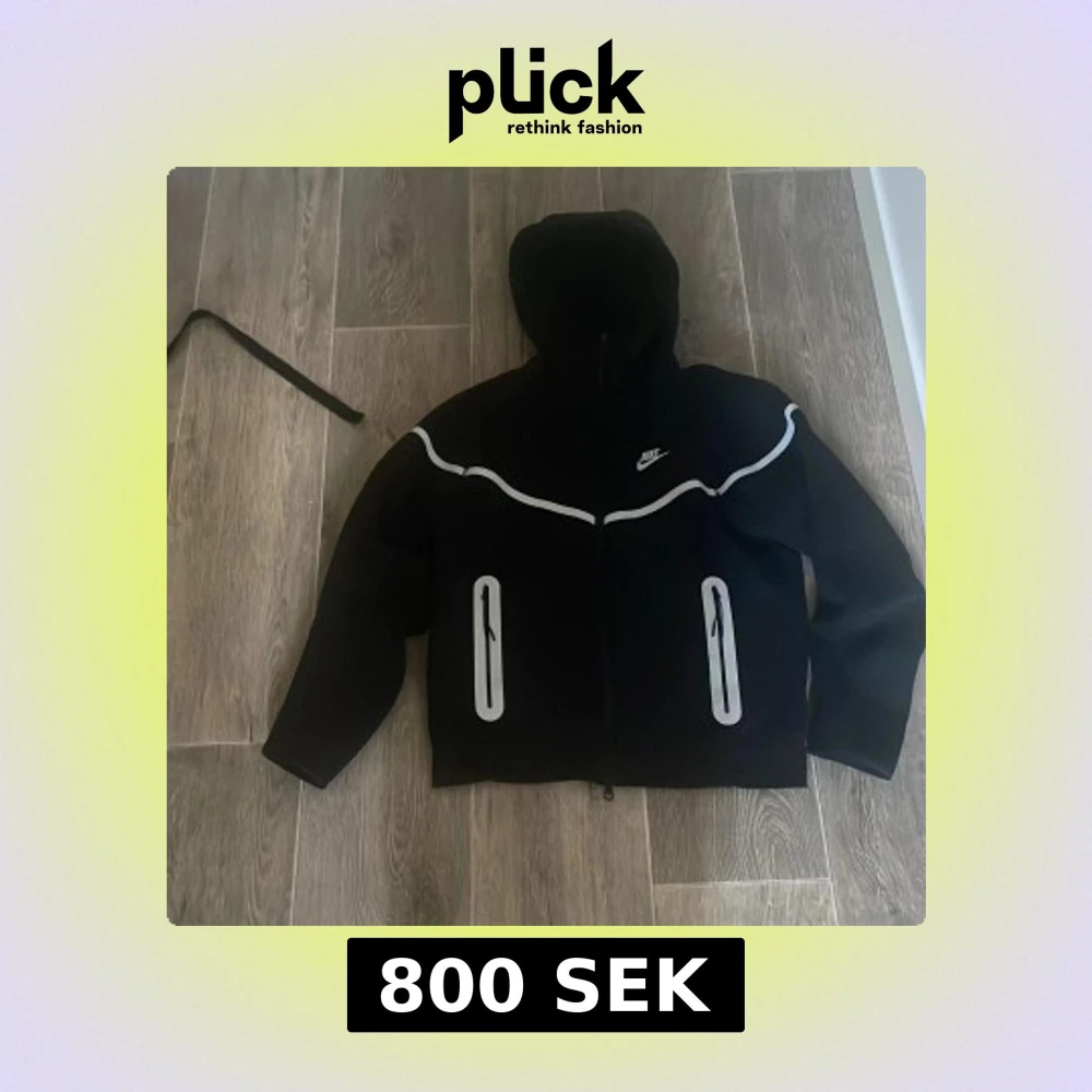 Xs. Svart vindjacka från Nike med huva och vita reflexdetaljer längs bröstet och vid fickorna. Jackan har dragkedja framtill och två vertikala fickor med dragkedja. Perfekt för dig som vill sticka ut med snygga reflexer när det är mörkt ute. SX