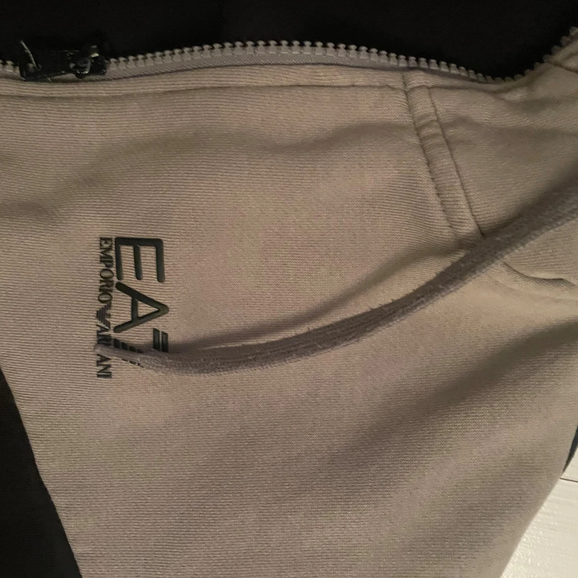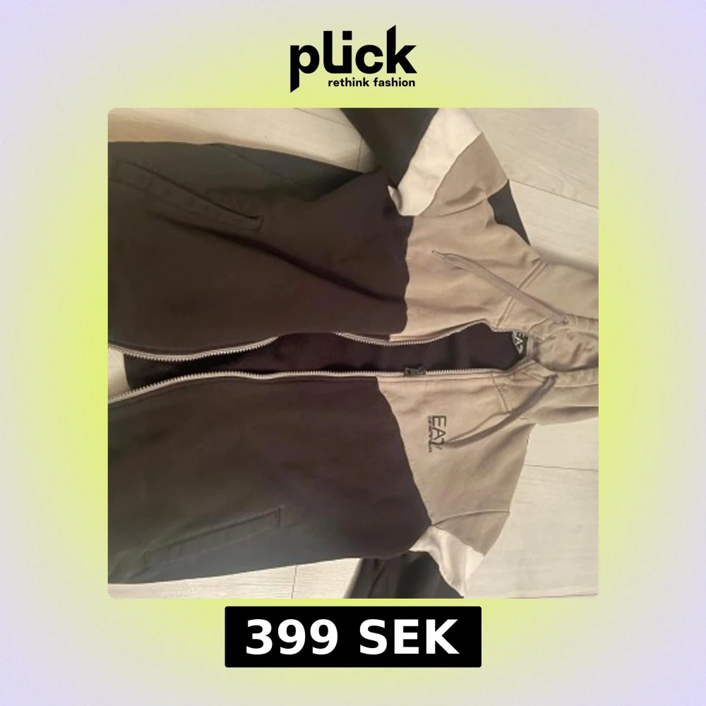 Snygg hoodie från EA7 Emporio Armani i svart och beige färgblock. Tröjan har dragkedja, huva med snörning och EA7-logga på bröstet. Perfekt för dig som gillar streetwear och vill ha en stilren look.