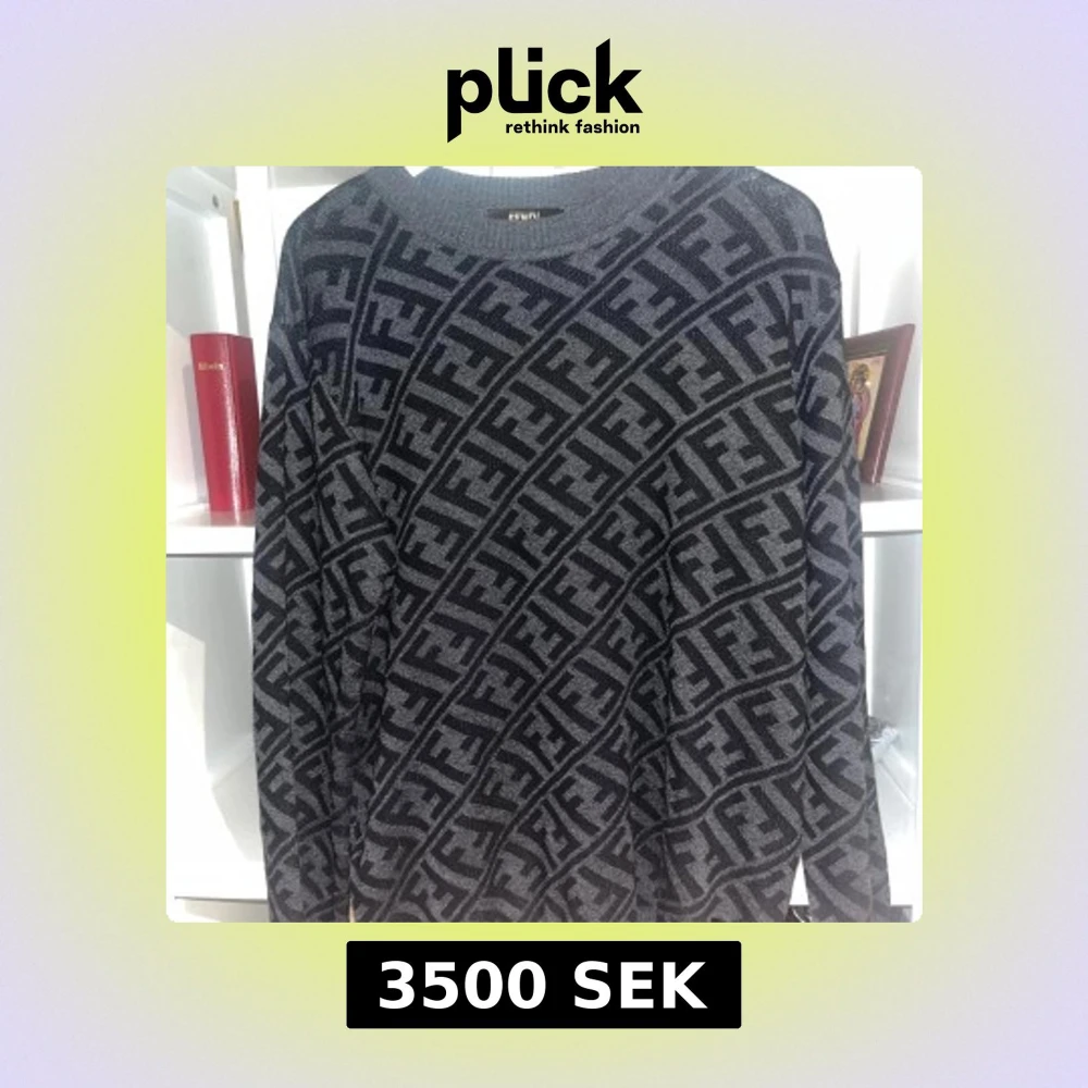 Snygg svart och grå tröja från Fendi med ett iögonfallande mönster av märkets logotyp. Tröjan har långa ärmar och en rund halsringning, perfekt för en stilren look.Helt ny också