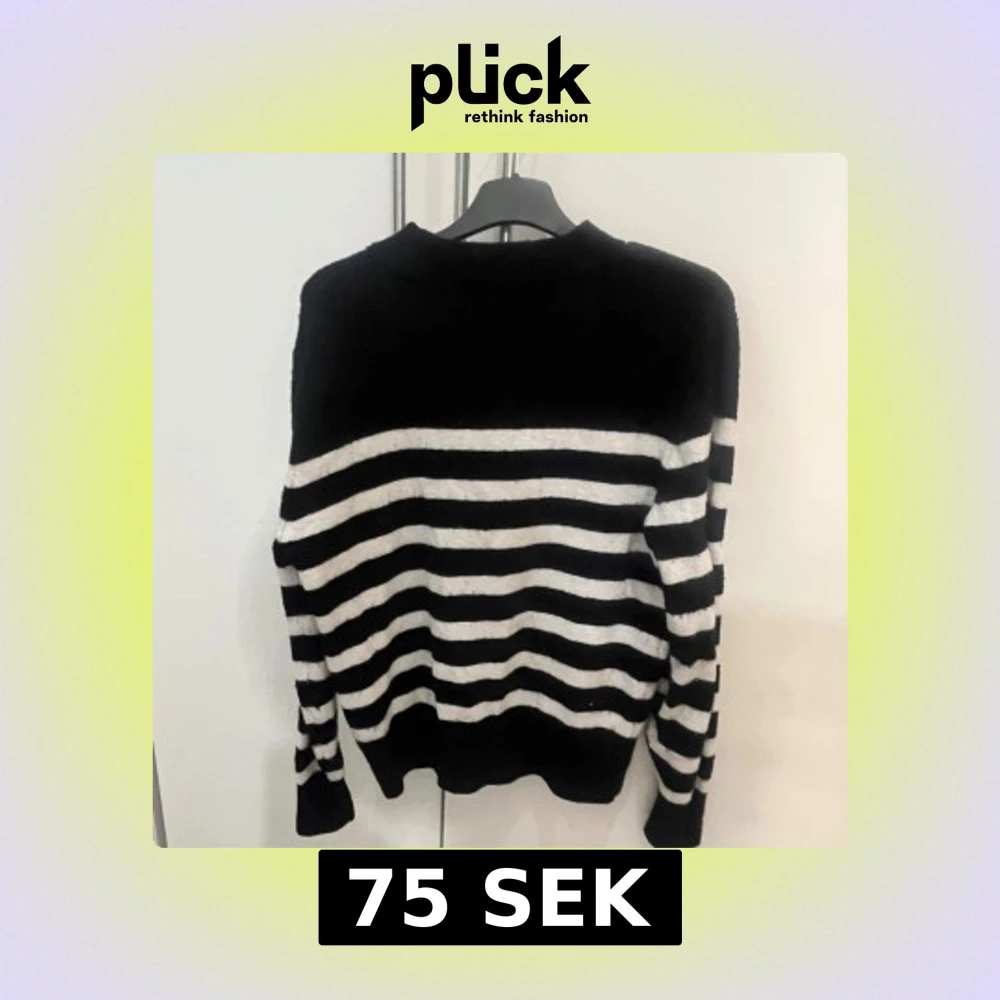 Säljer en stilren svart och vit randig tröja med långa ärmar. Perfekt för en avslappnad look. Tröjan har en klassisk design med horisontella ränder.