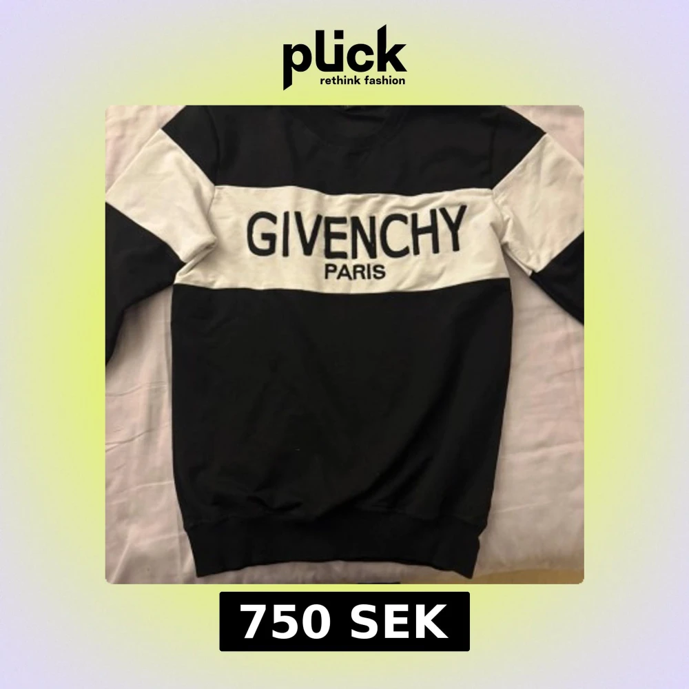 Snygg svart och vit tröja från Givenchy Paris med stor logga framtill. Tröjan har lång ärm och bred vit panel över bröstet och armarna. Perfekt för dig som gillar streetstyle och vill sticka ut med ett exklusivt märke.