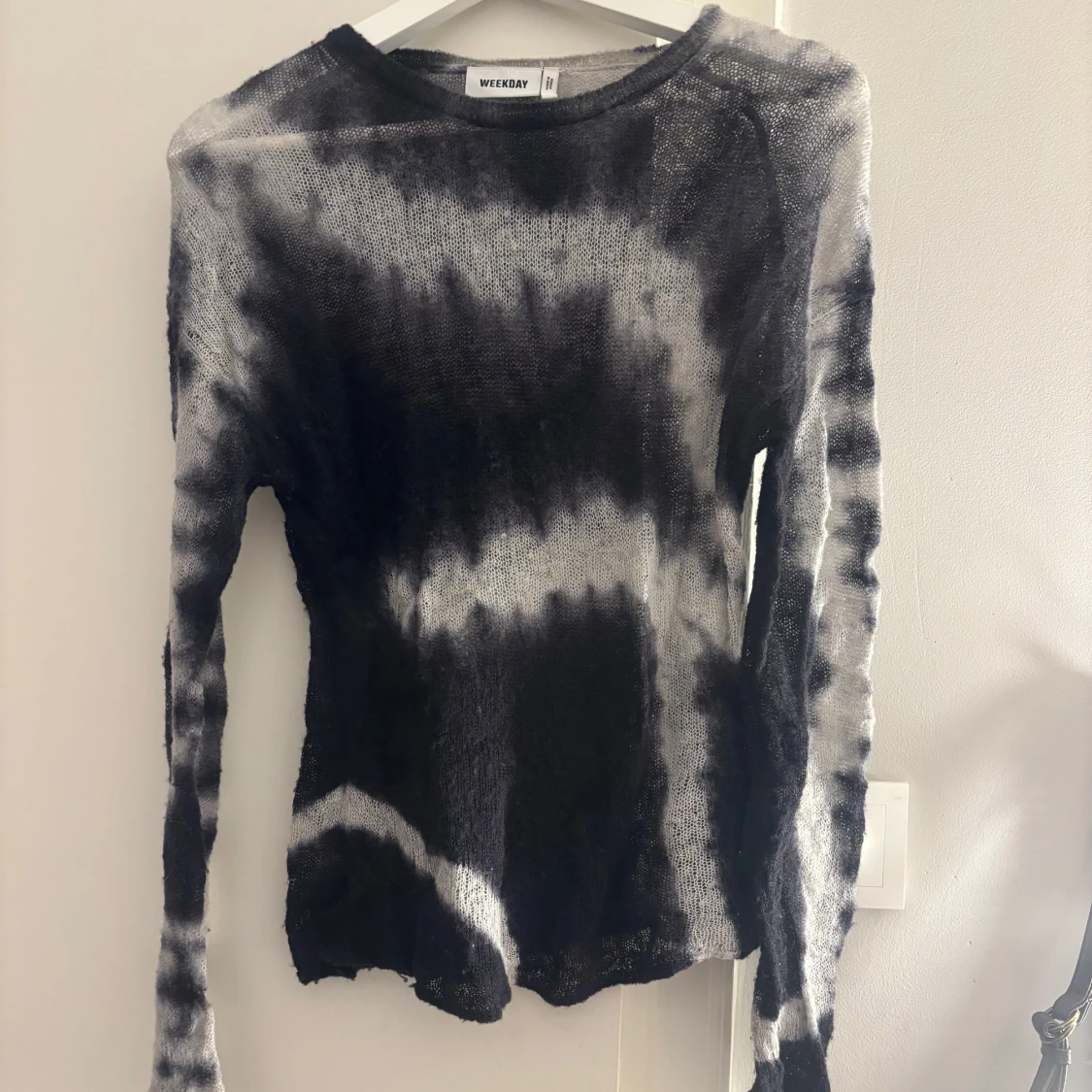 Säljer en cool svart och vit tröja från Weekday med ett unikt mönster🩷🩷