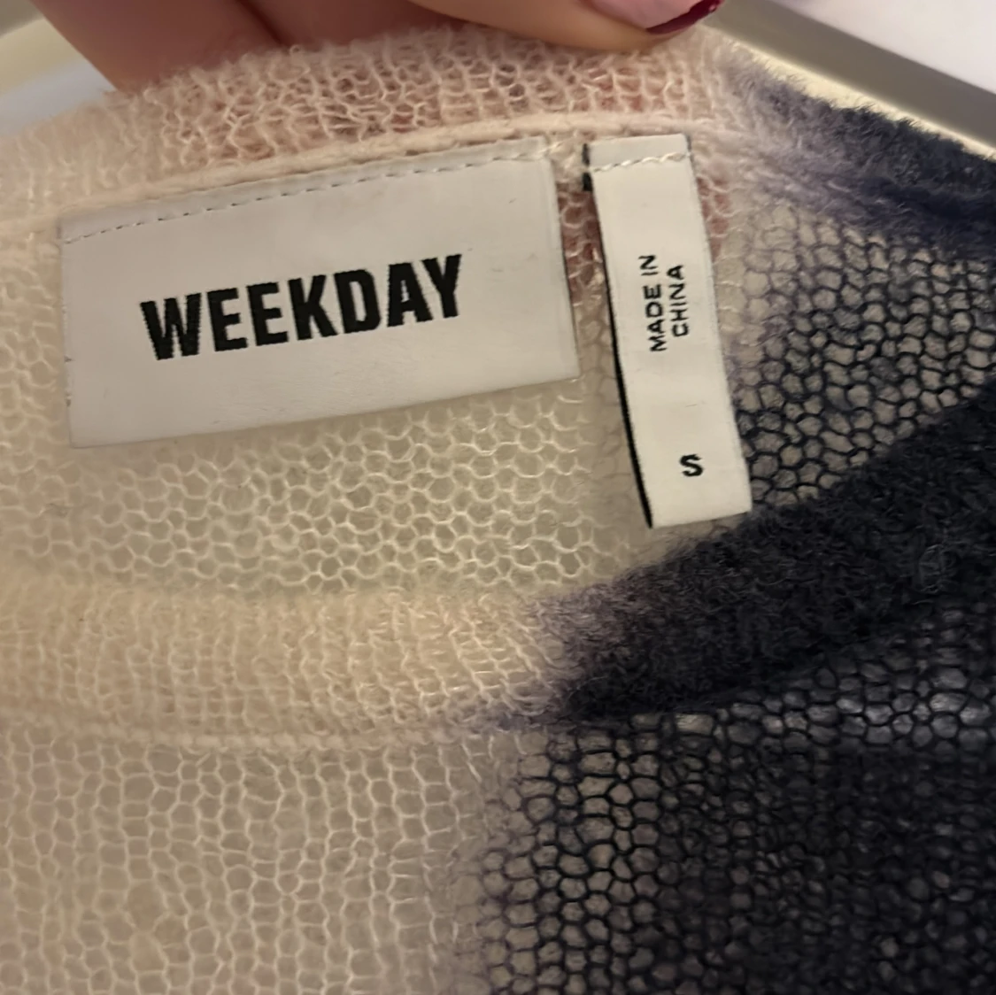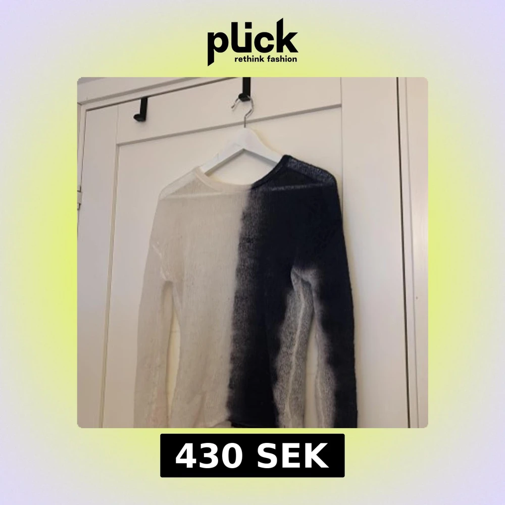Snygg svart och vit tröja från Weekday med ett unikt färgblocksmönster. Tröjan har en långärmad design och är tillverkad i ett lätt och transparent material. Perfekt för en stilren och modern look.