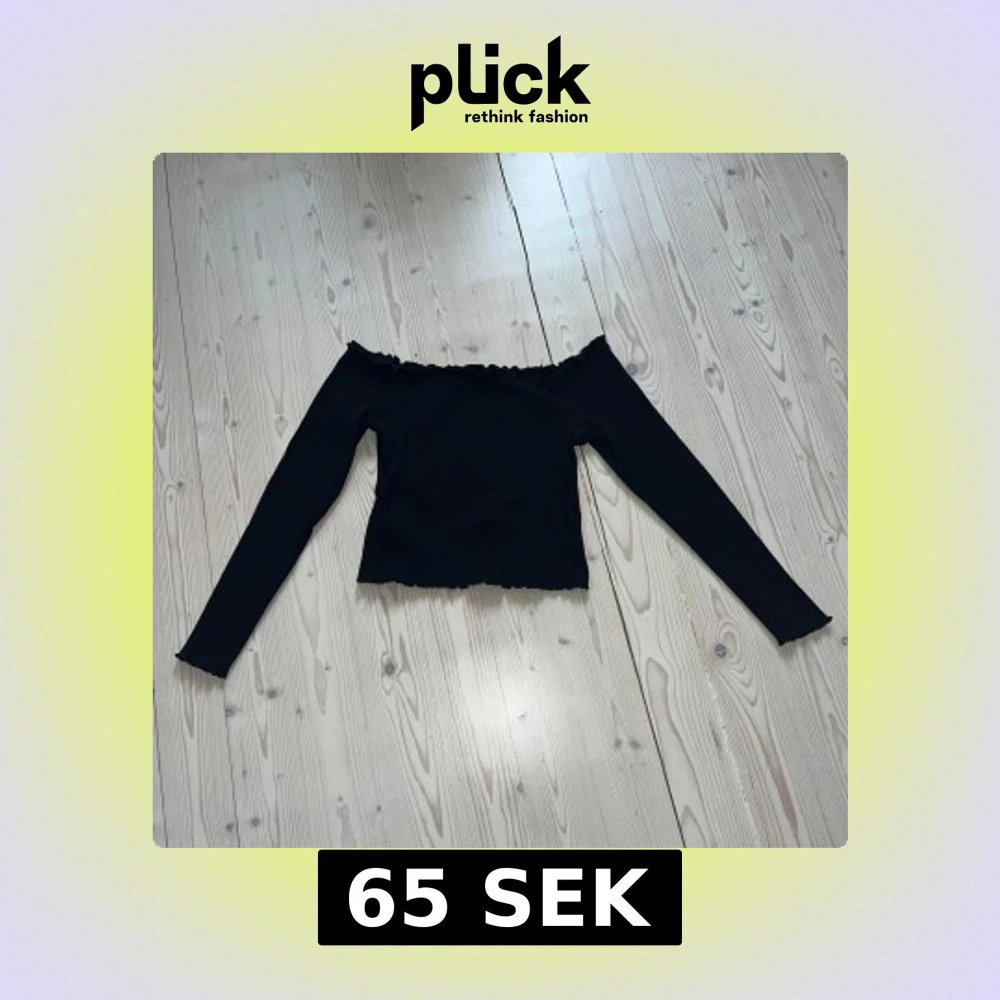 Säljer en stilren svart off-shoulder topp med långa ärmar. Perfekt för en trendig look. Toppen har en ribbad kant vid ärmslut och nederkant.🩷