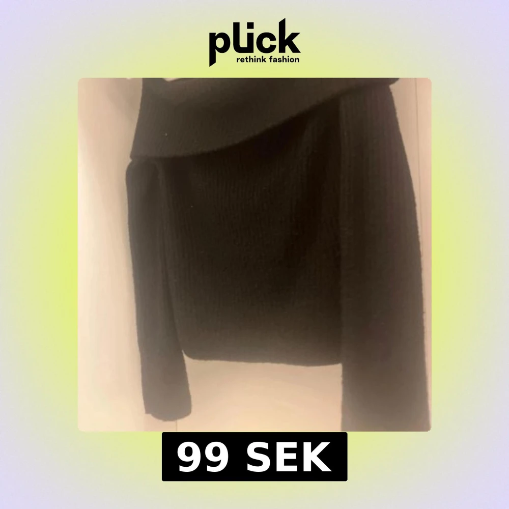 Snygg svart offshoulder stickad tröja som är perfekt för kyligare dagar. Den har en elegant design med långa ärmar och en bred krage som ger en stilren look. Passar utmärkt till både jeans och kjol.