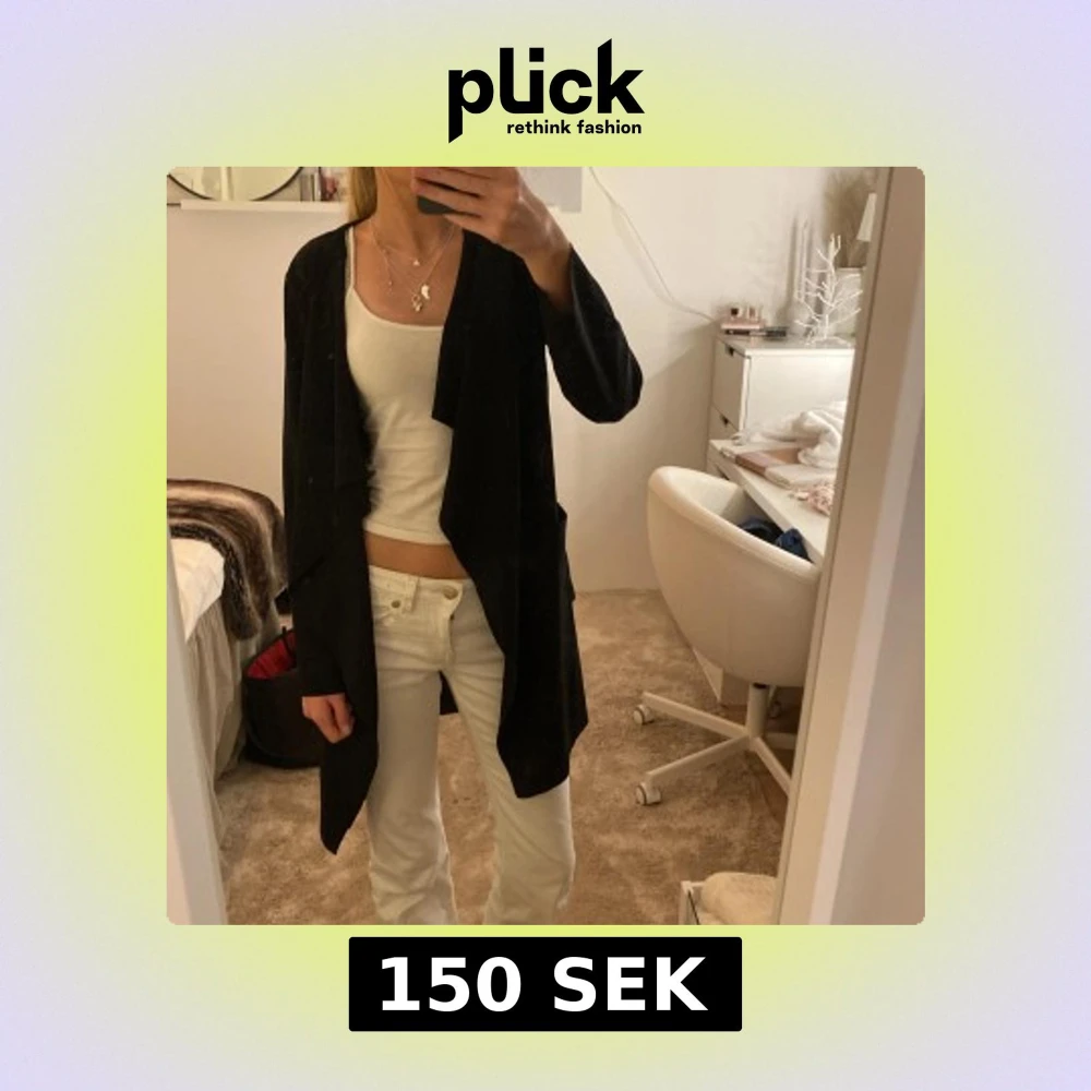 Snygg svart kappa i omlottmodell med bälte i midjan. Jackan har långa ärmar och en avslappnad, lite loose passform. Perfekt för dig som gillar stilrena och enkla plagg. Materialet känns mjukt och följsamt, och kappan har en klassisk look som funkar till många outfits.