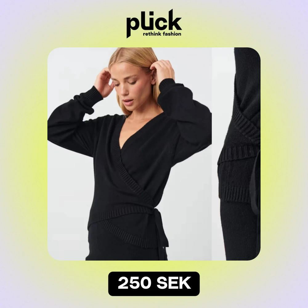 Säljer en superfin svart omlottkofta med ribbade detaljer. Den har långa ärmar och ett knytband i midjan som ger en snygg passform. Perfekt för både höst och vinter, och funkar lika bra till vardags som till fest. 🖤