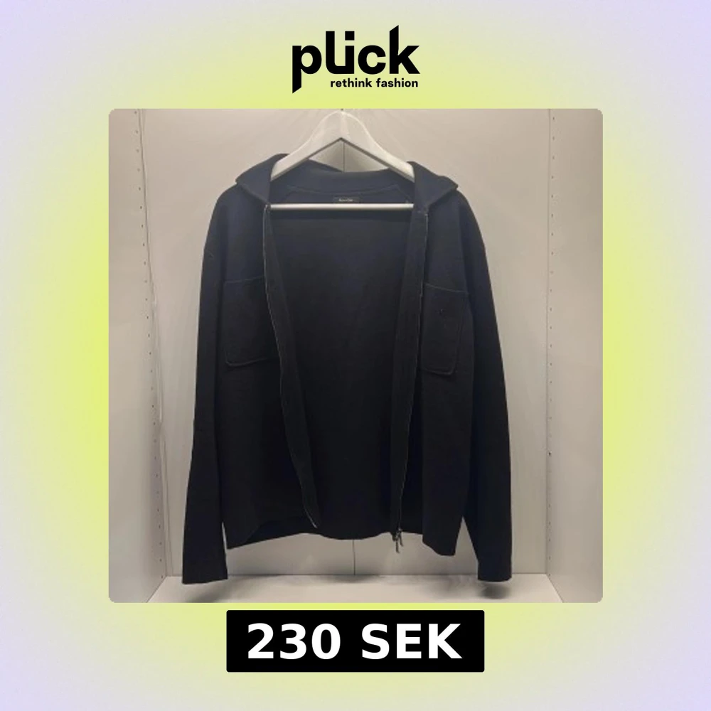 Svart overshirt från Massimo Dutti i storlek M. Tröjan har dragkedja framtill, två stora fickor på bröstet och huva. Materialet är mjukt och känns lite stickat, perfekt för kyliga dagar. Enkel och stilren design som funkar till det mesta.