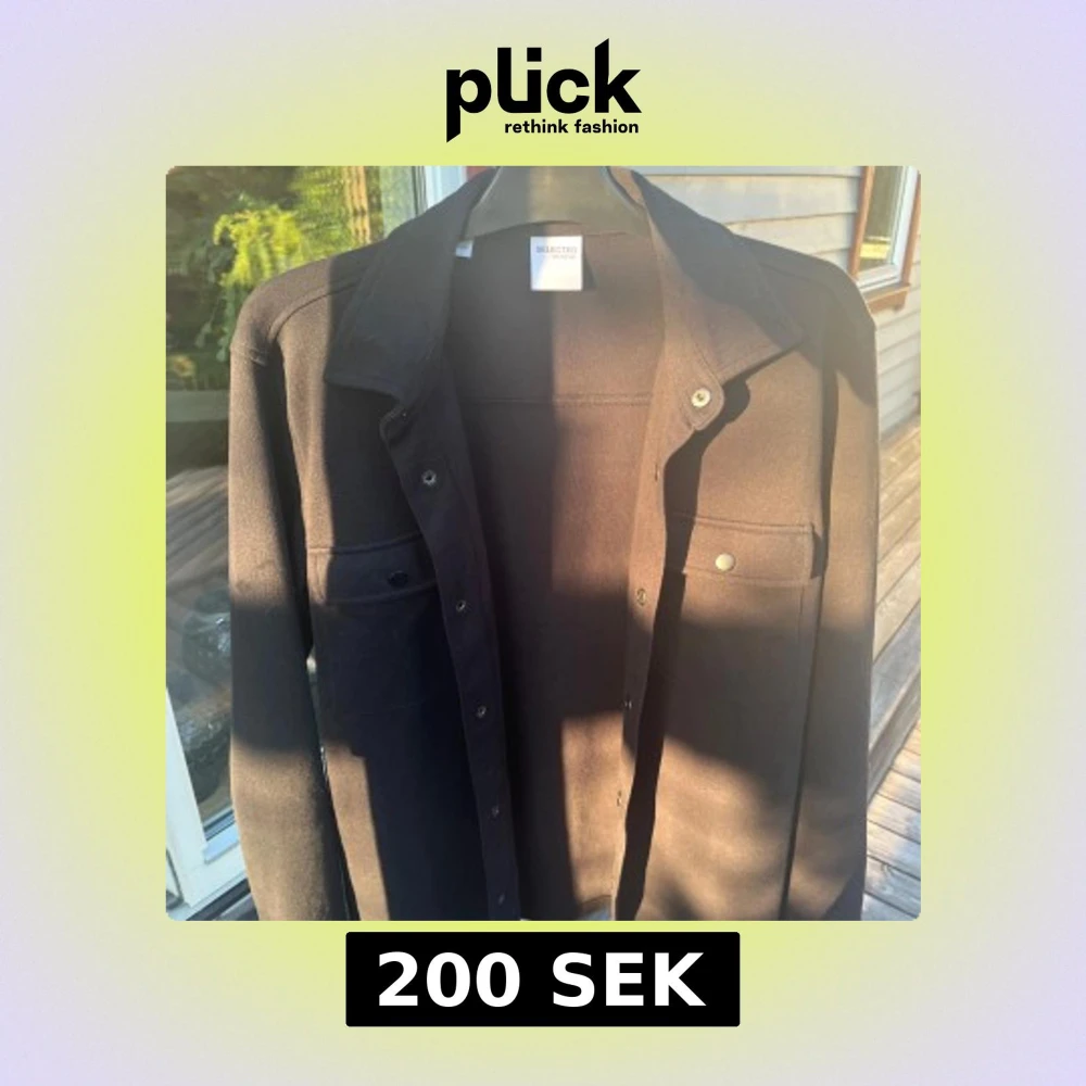 Säljer en svart overshirt från Selected Homme med klassisk krage och tryckknappar framtill. Skjortan har två bröstfickor med lock och lång ärm. Knappt använd!