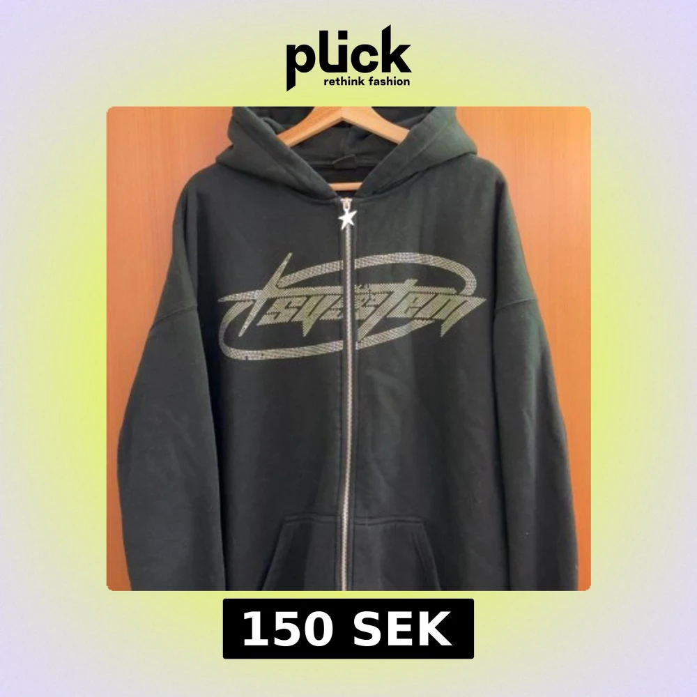 Svart hoodie från FSBN i oversized passform med dragkedja framtill och stort tryck i grönt och vitt på bröstet. Mjuk insida och huva, perfekt för en avslappnad stil. Fickor framtill och ribbade muddar vid ärmslut och nederkant.