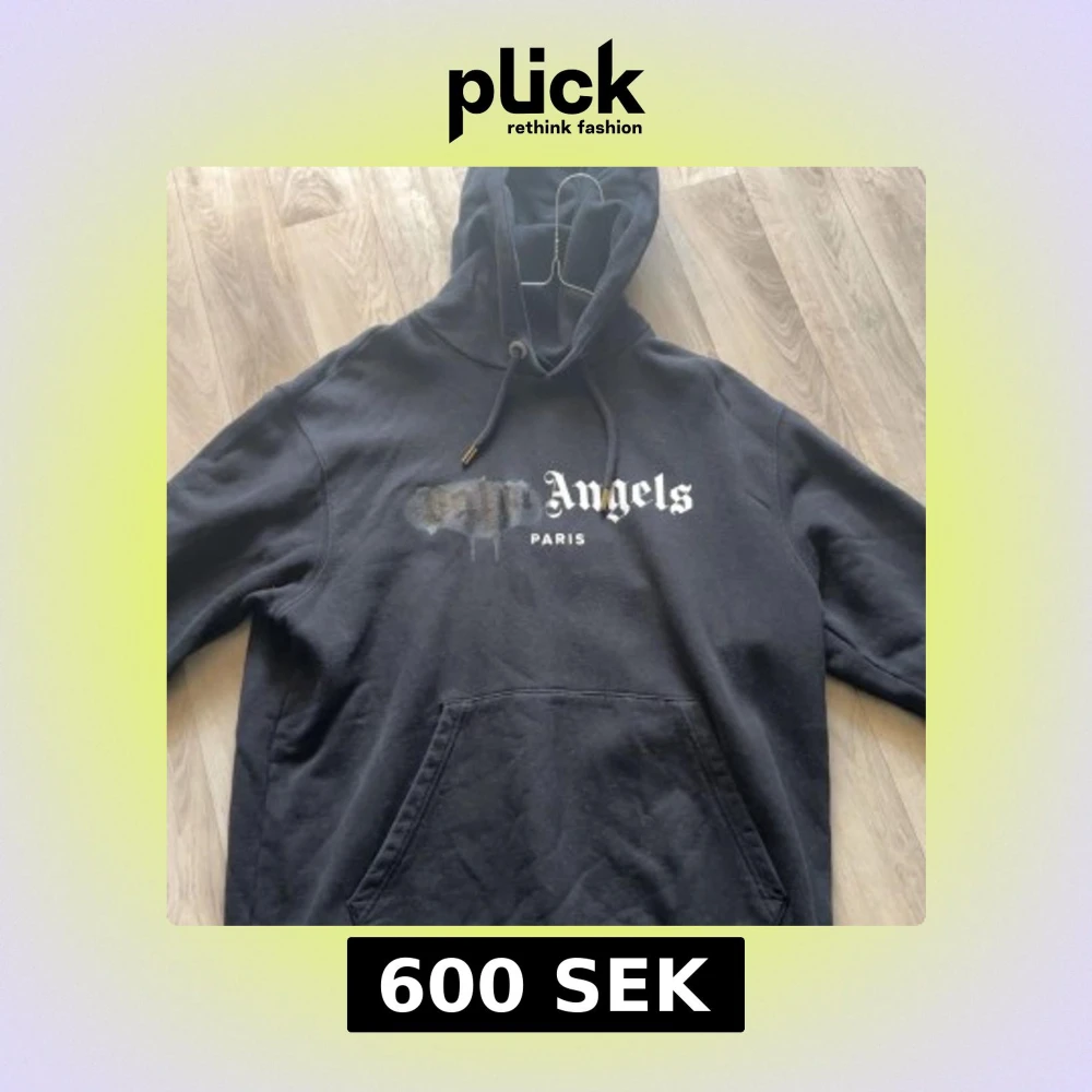 Svart hoodie från Palm Angels med ikoniskt logotryck och texten 'Paris' på bröstet. Klassisk känguruficka, huva med snörning och avslappnad passform. Perfekt för dig som gillar streetwear och vill sticka ut med en snygg detalj.