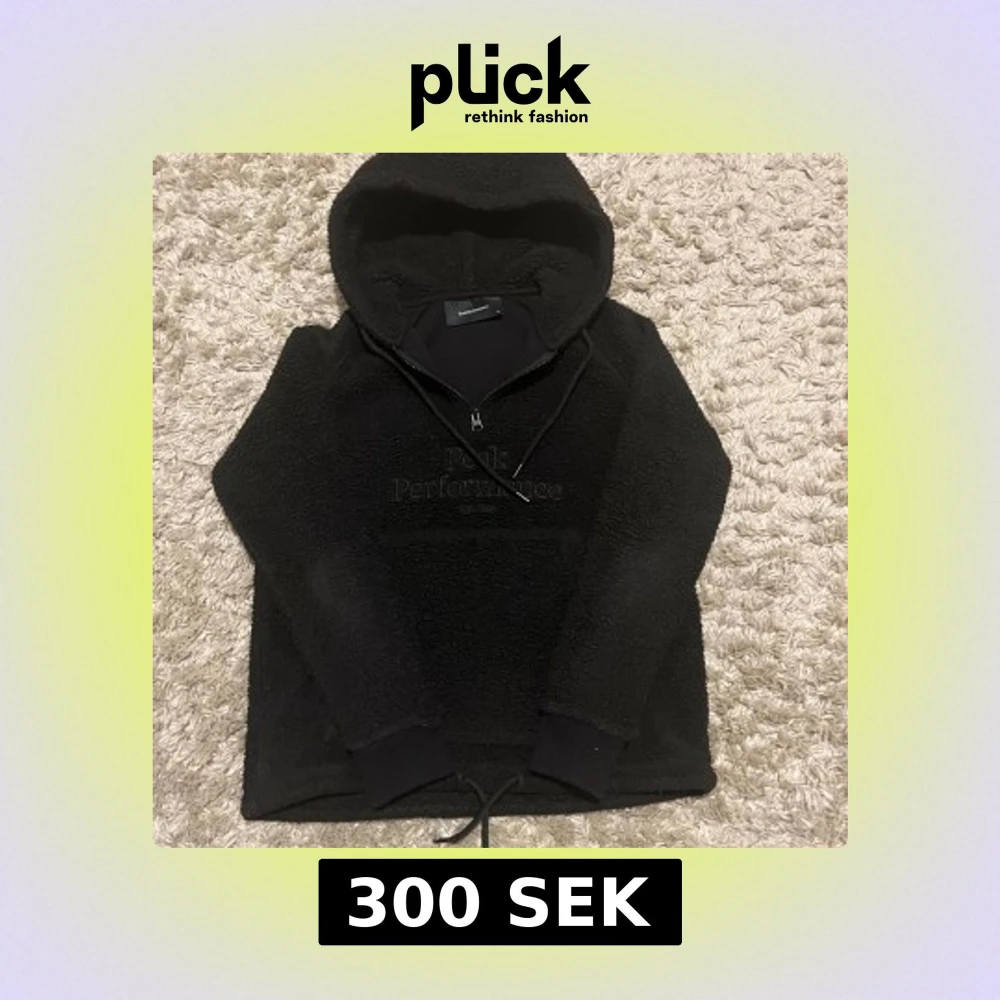 Mysig svart hoodie från Peak Performance i fleece med broderad logga på bröstet. Tröjan har huva, snörning nedtill, half zip och långa ärmar. Perfekt för kalla dagar och chill stunder. Snygg och enkel att matcha med jeans eller mjukisbyxor.