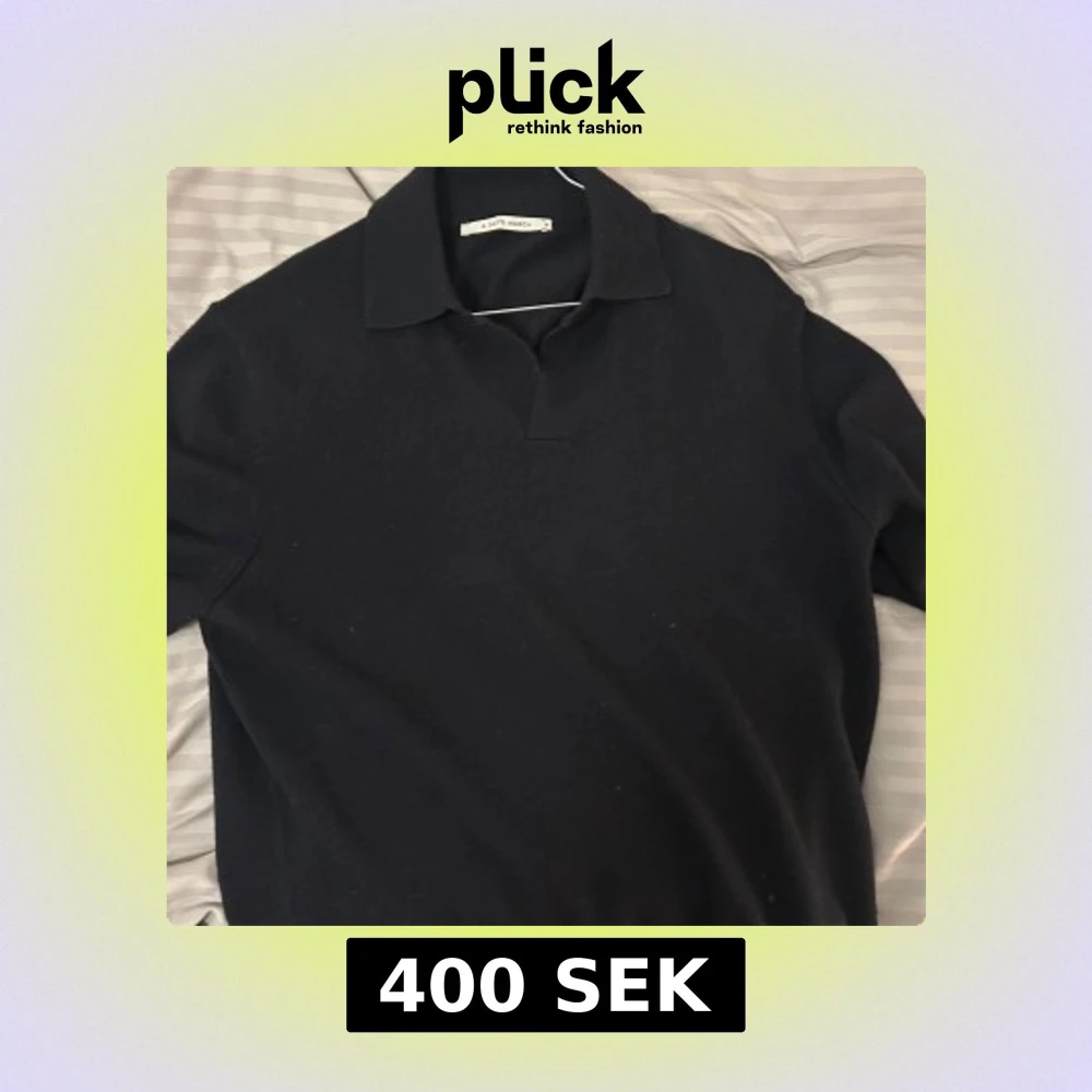 Säljer en stilren svart pikétröja från A Day's March. Tröjan har en klassisk krage och korta ärmar, perfekt för en avslappnad men ändå snygg look. Passar bra till både jeans och chinos.