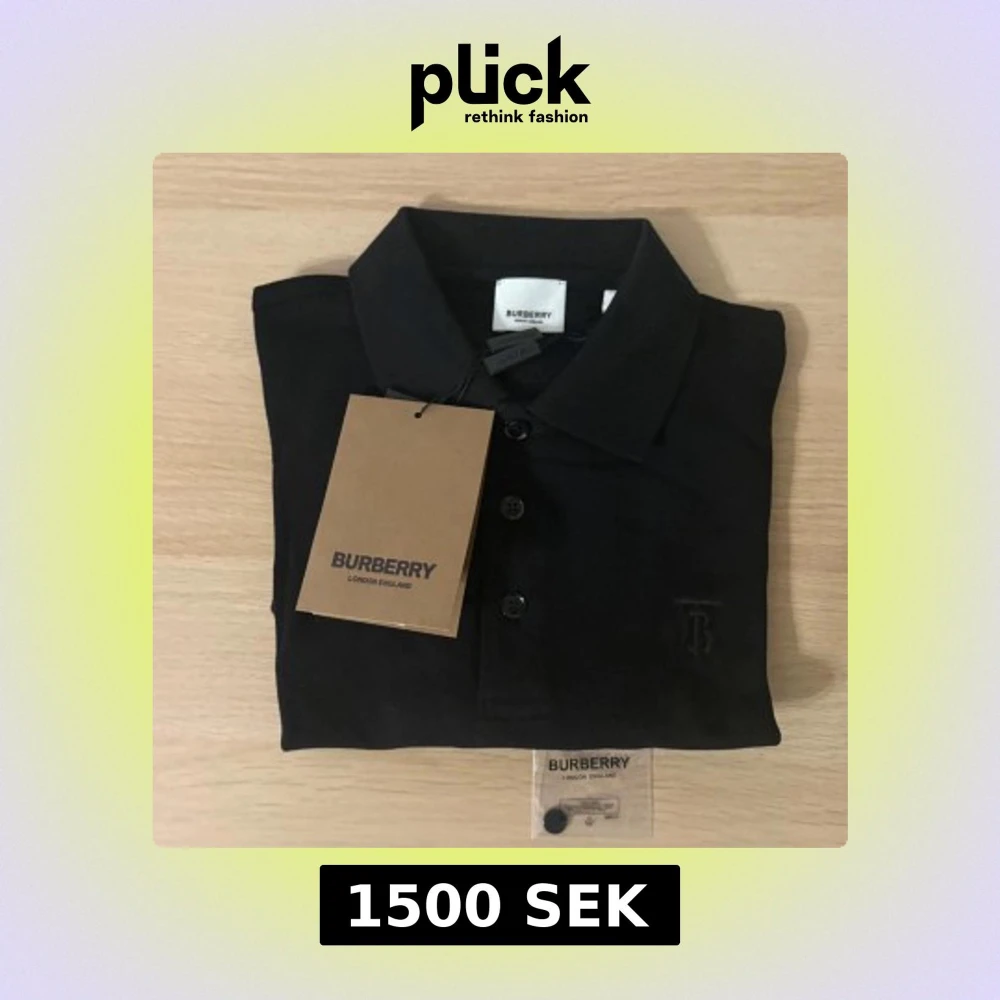 Klassisk svart pikétröja från Burberry med diskret broderad logga på bröstet. Tröjan har krage, knäppning med tre knappar och är tillverkad i mjuk bomull. Perfekt för en stilren och clean look.