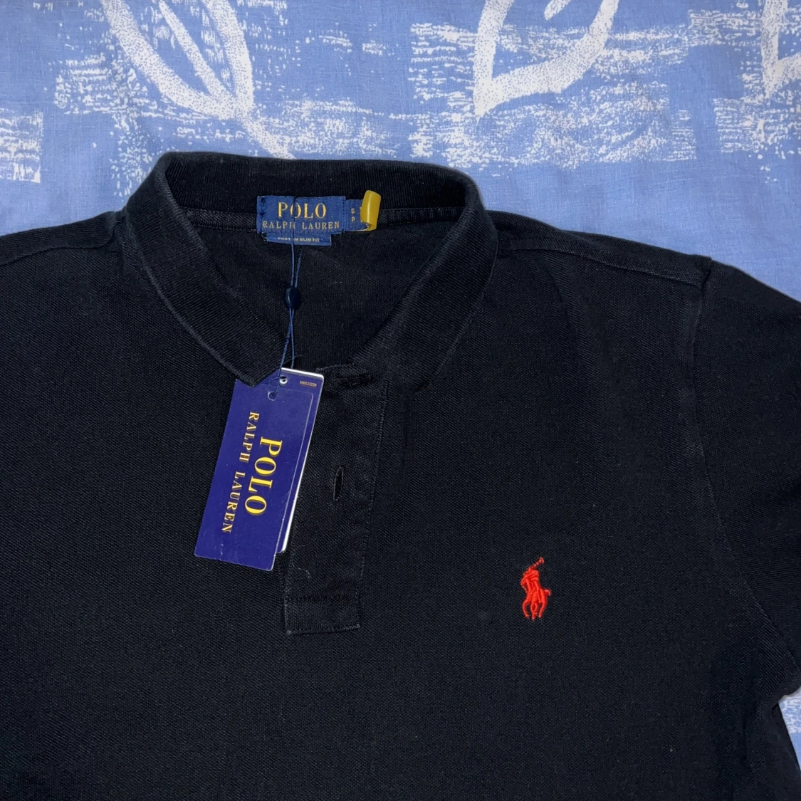 Klassisk svart pikétröja från Polo Ralph Lauren med röd broderad logga på bröstet. Tröjan har korta ärmar, krage och knappar framtill. Tillverkad i bomull för en skön och stilren känsla. Perfekt för en clean och tidlös look.